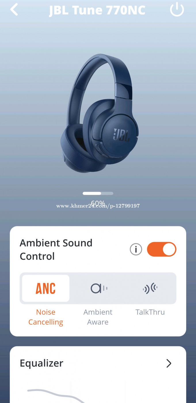 ប្រើល្អថ្មកាន់ កាស់ហ្ស៊ីន ដាក់appបាន JBL Pure Bass sound មាន noise canceling, ថ្ម 70 hours (ANC off) $75 012799xxxClick To Call