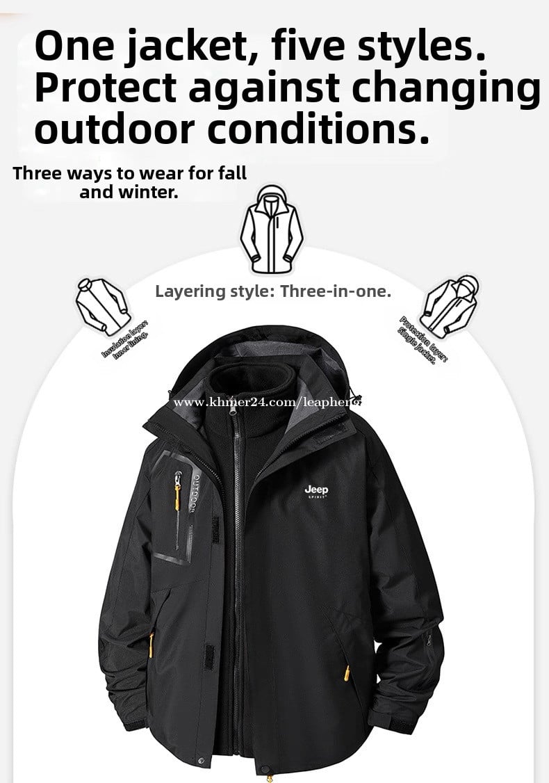 Condition: New Details: Jeep Men's Jacket, Cotton Coat, 2025 New Model, Spring, Autumn and Winter Three-In-One, Men's Fleece-Lined and Thickened Outerwear. មាន size: - L : 165-170cm (height cm and weight: 45-52Kg) - XL : 170-175cm (height cm and weight: 52-60Kg)