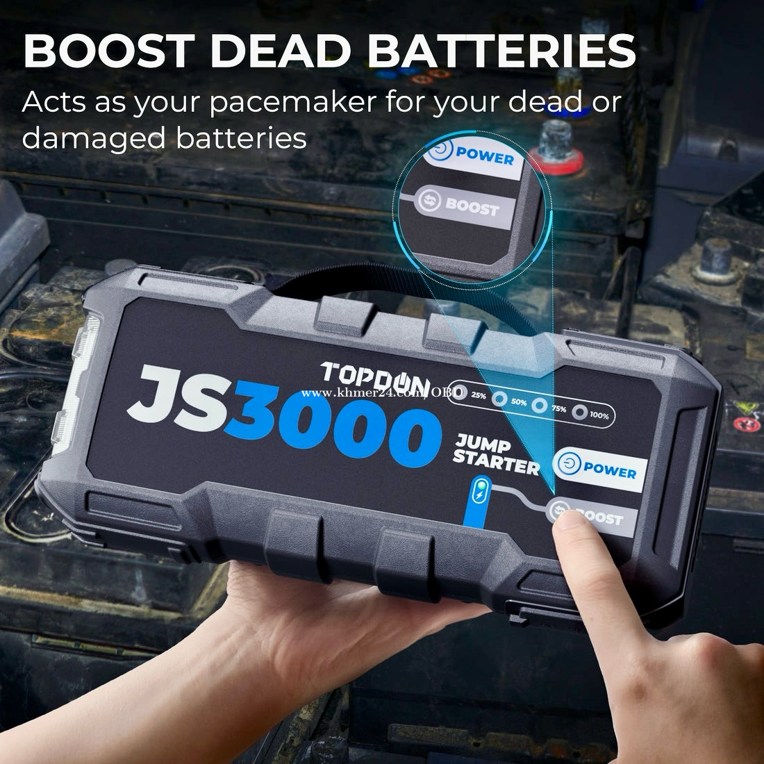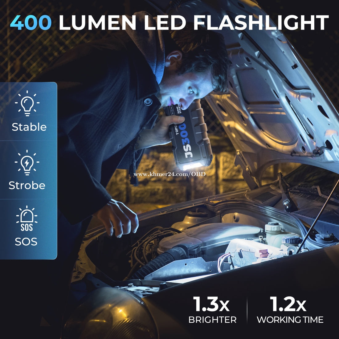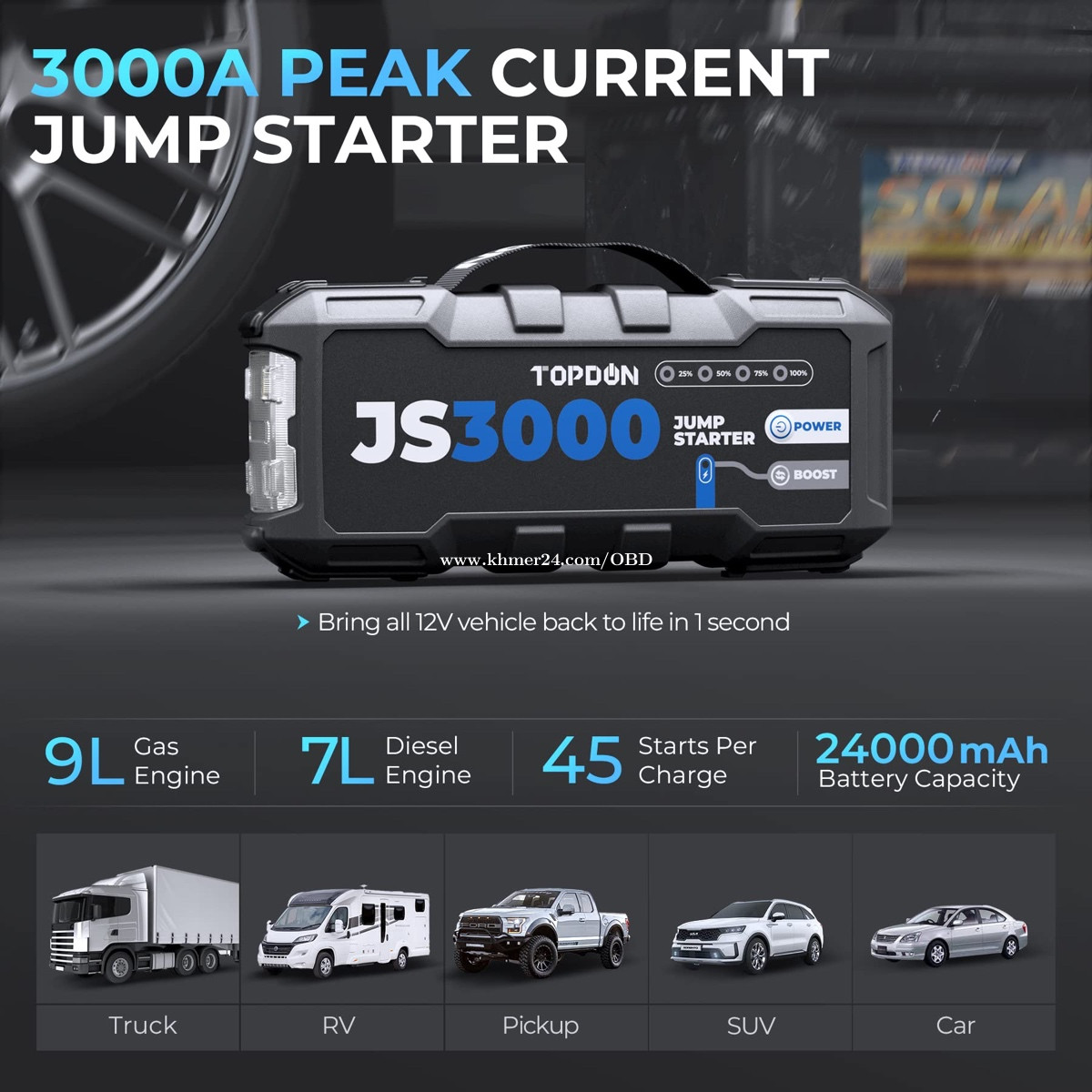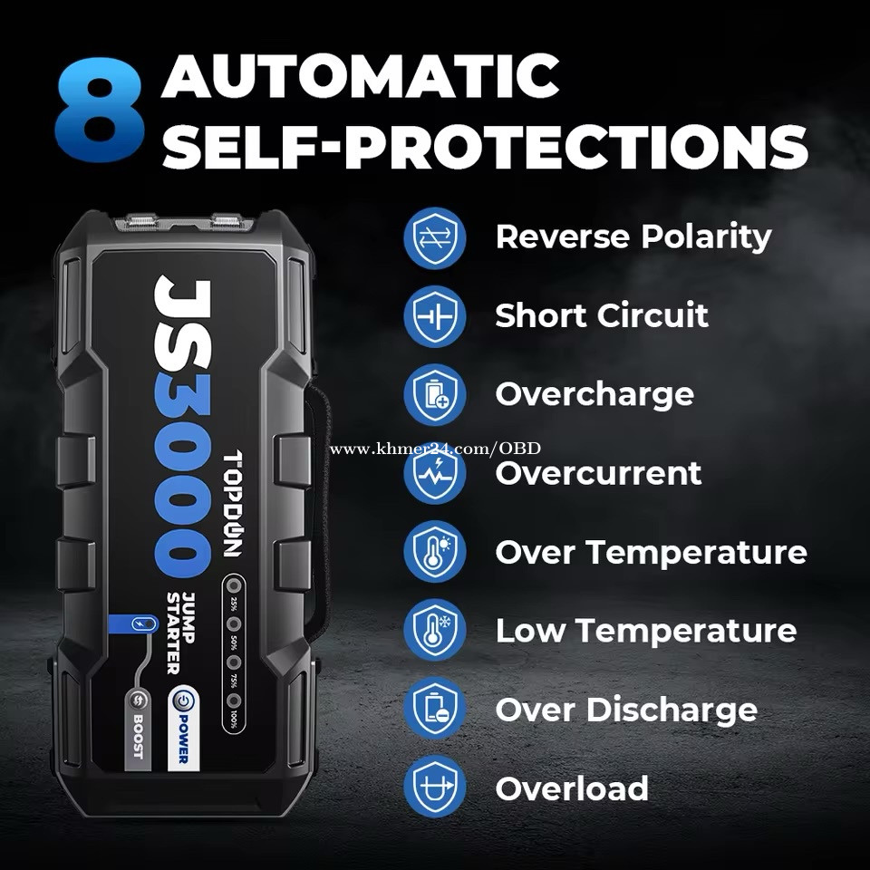 Easy to use with Petrol and Diesel car, for engine V6 and V8 , No problem. This is new model JS3000 for jump start with special function “ Boost” when car’s battery voltage too low.