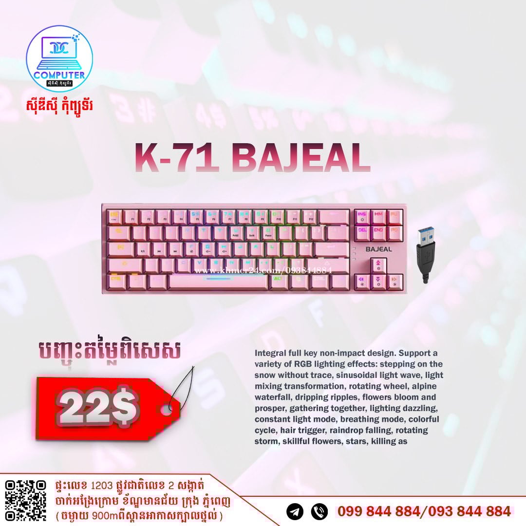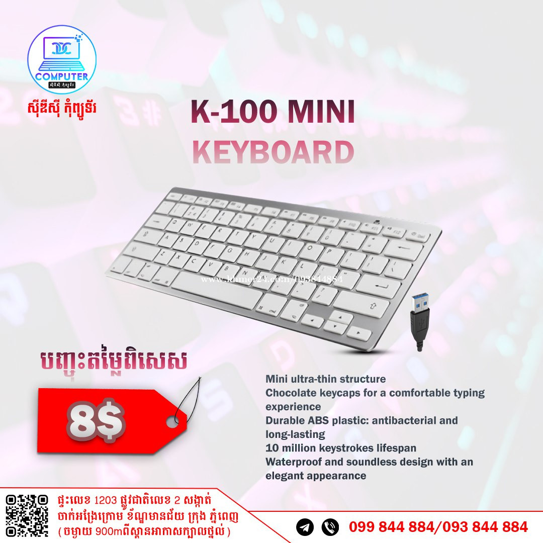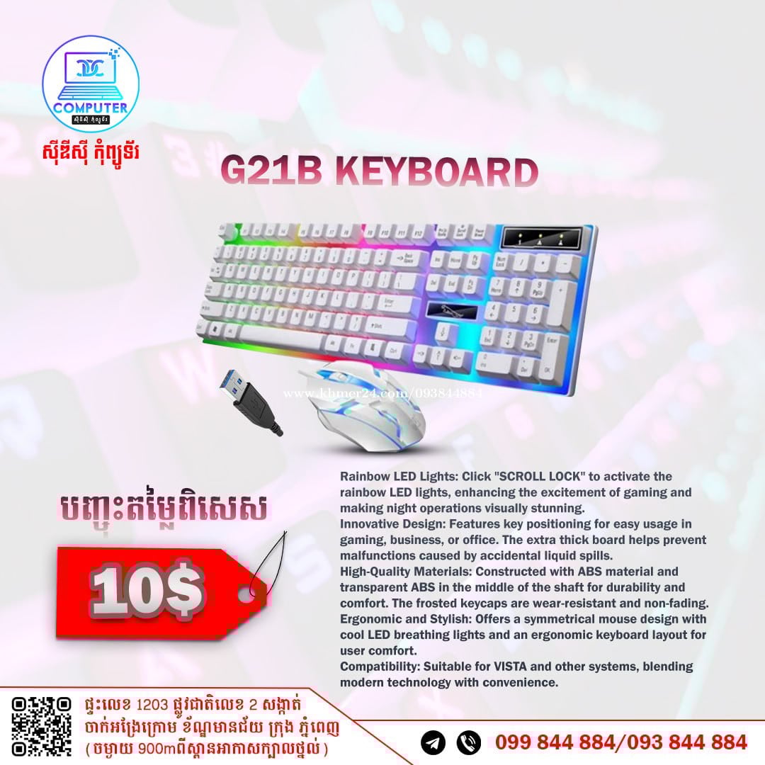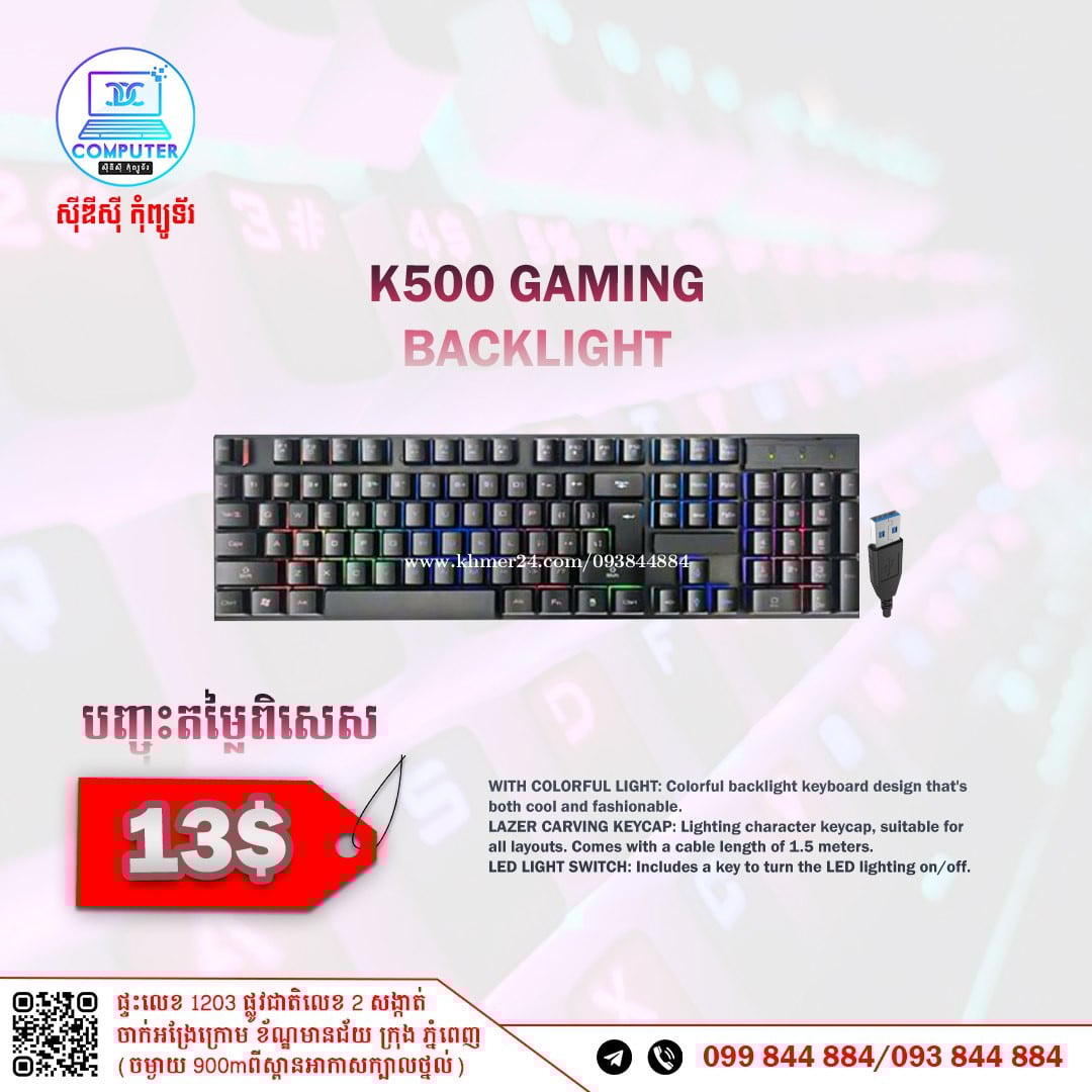 Keyboard USB Normal and Gaming មានច្រើនជម្រើស តម្លៃល្អ ! 💯 អតិថិជនអាចអញ្ញើញមកផ្ទាល់ដល់ទីតាំងហាងបានទំនិញមានស្រាប់មិនបាច់រង់ចាំយូរ ! ☎️ទូរស័ព្ទលេខ : 093844xxxClick To Call / 099844xxxClick To Call 📬Telegram : t.me/CDCCOMPUTER093 🏠ទីតាំងហាង : ផ្ទះលេខ 1203 ផ្លូវជាតិលេខ2 , ចាក់អង្រែលើ , ខ័ណ្ឌមានជ័យ , ភ្នំពេញ ( ចំងាយ 900m ពីស្ពានអាកាសក្បាលថ្នល់ ) 📍 Google map : https://maps.app.goo.gl/R3W9thPP5omgsMaZA