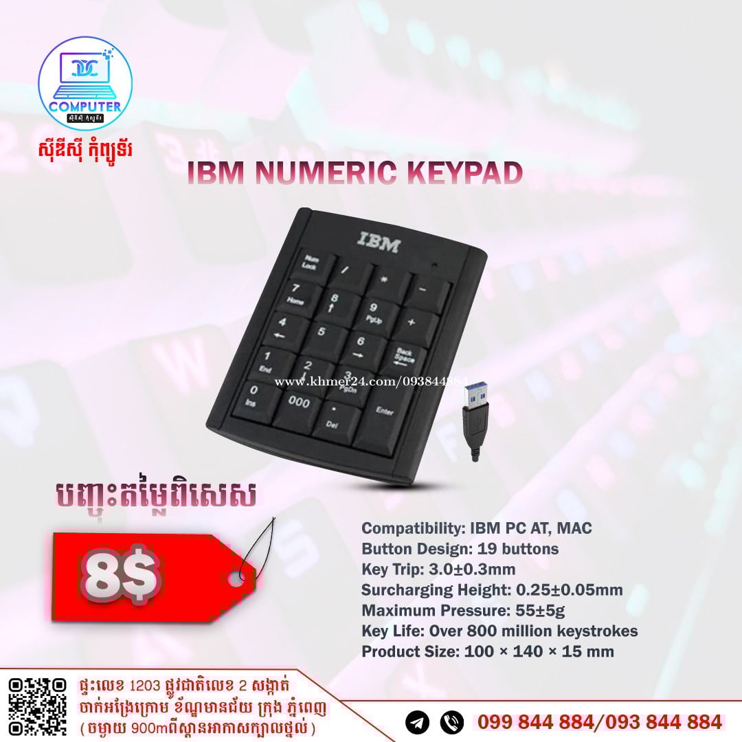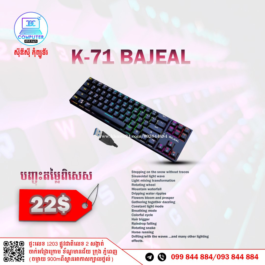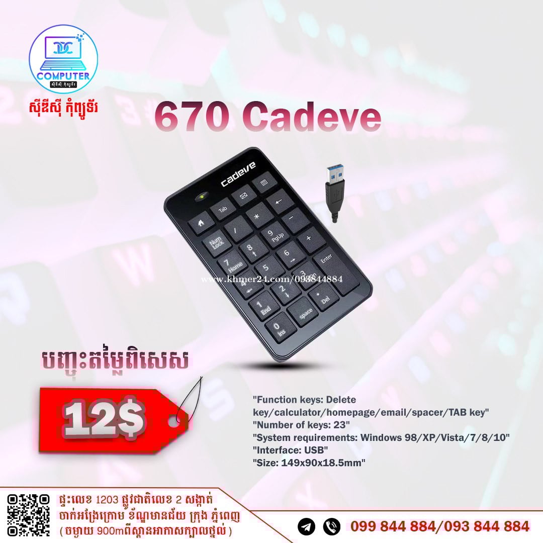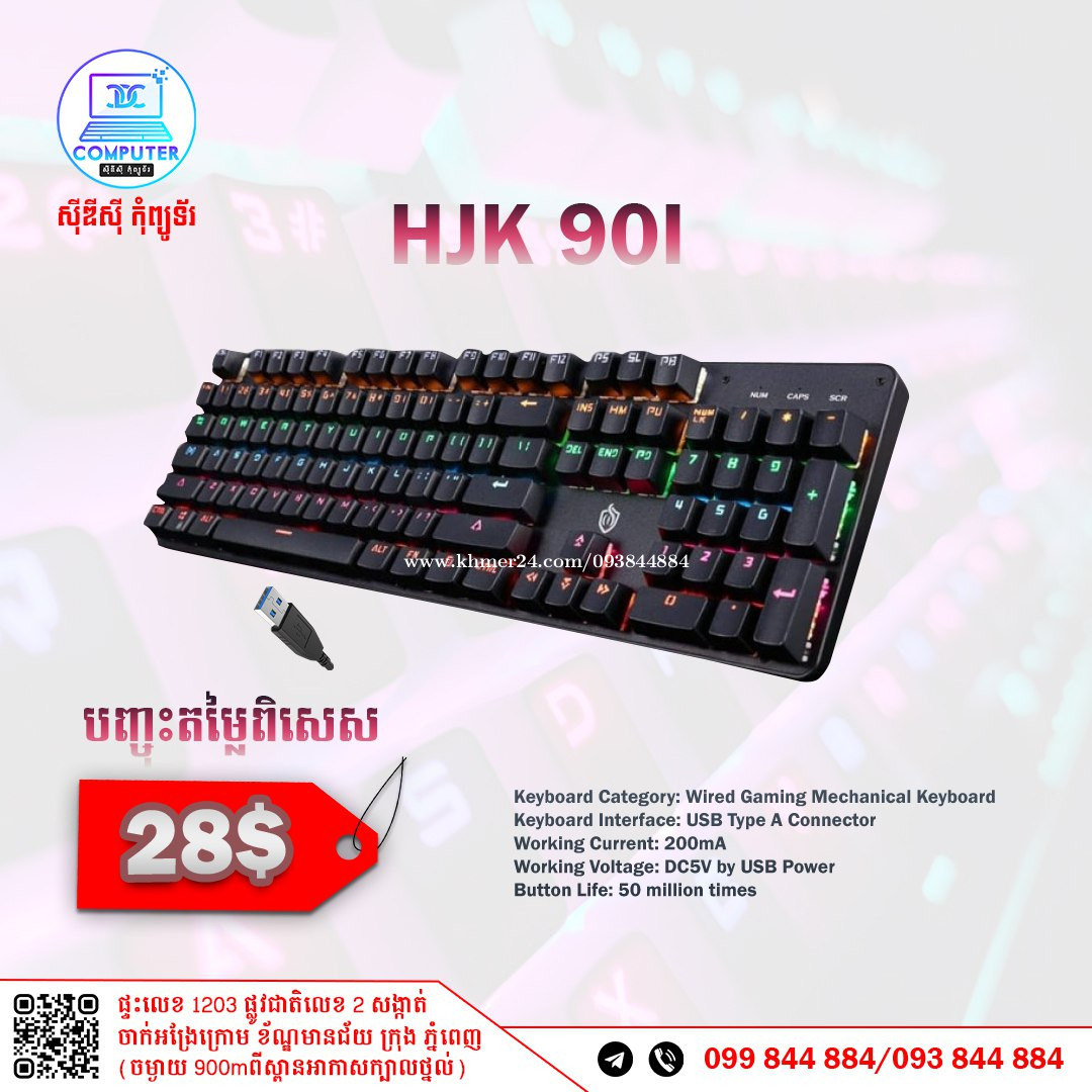 Keyboard USB Normal and Gaming មានច្រើនជម្រើស តម្លៃល្អ ! 💯 អតិថិជនអាចអញ្ញើញមកផ្ទាល់ដល់ទីតាំងហាងបានទំនិញមានស្រាប់មិនបាច់រង់ចាំយូរ ! ☎️ទូរស័ព្ទលេខ : 093844xxxClick To Call / 099844xxxClick To Call 📬Telegram : t.me/CDCCOMPUTER093 🏠ទីតាំងហាង : ផ្ទះលេខ 1203 ផ្លូវជាតិលេខ2 , ចាក់អង្រែលើ , ខ័ណ្ឌមានជ័យ , ភ្នំពេញ ( ចំងាយ 900m ពីស្ពានអាកាសក្បាលថ្នល់ ) 📍 Google map : https://maps.app.goo.gl/R3W9thPP5omgsMaZA