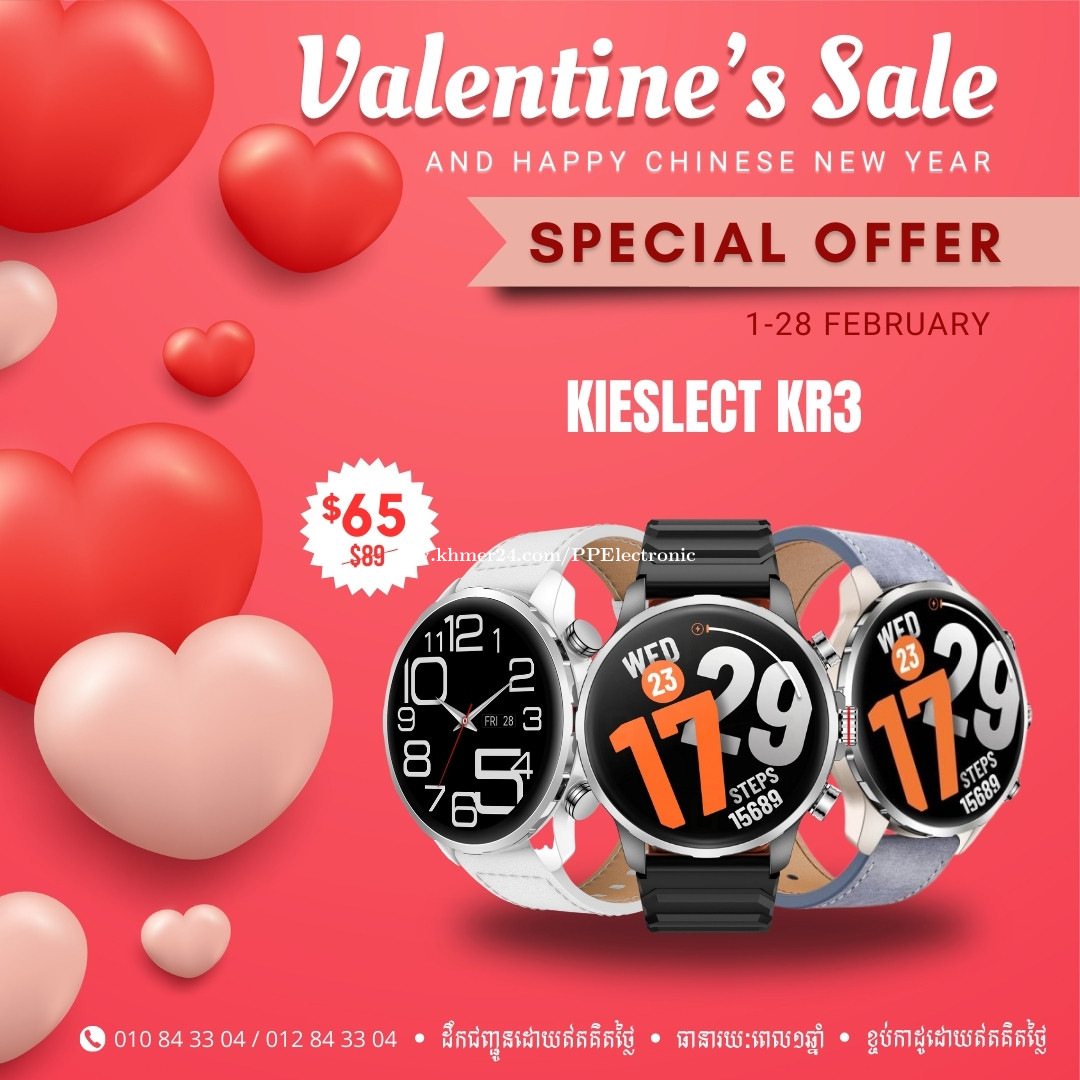 Kieslect Kr3 & ULTRA3ជានាឡិកាឆ្លាតវៃដែលពាក់នៅលើដៃជួយឲ្យបុរសកាន់តែមានភាពលេចធ្លោ ទាន់សម័យ រូបរាងស្រស់ស្អាតទាក់ទាញ និងមានមុខងារដ៏ឆ្លាតវៃពិសេសជាច្រើនដែលគួរឲ្យចាប់អារម្មណ៍ជាច្រើនផងដែរ 💲បញ្ជាទិញឥឡូវនេះដើម្បីទទួលបានតម្លៃពិសេស 🛵ដឹកជញ្ជូនដោយឥតគិតថ្លៃទូទាំងប្រទេស 🛡 ធានារយៈពេល 1 ឆ្នាំ ☎️ ទំនាក់ទំនង: 010843xxxClick To Call (Smart) / 012843xxxClick To Call (Cellcard) 📲Telegram: https://t.me/PP_Eletronic_011 🏢 អាសយដ្ឋាន : ផ្ទះលេខ 56D2 ផ្លូវ 257 បឹងសាឡាង ទួលគោក ភ្នំពេញ 📍Google Map: https://maps.app.goo.gl/S2ePKd8b8sMvjaRV9