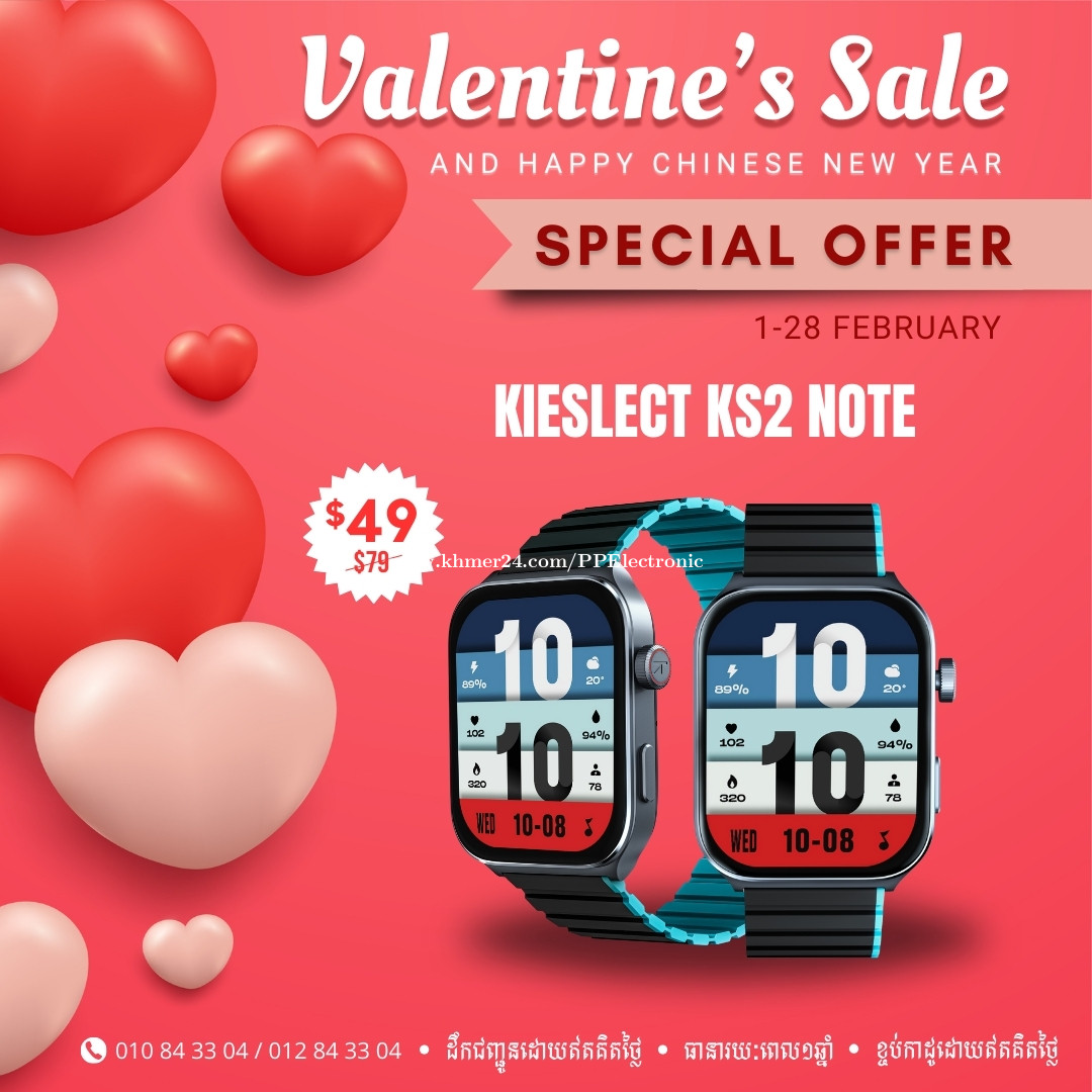 Kieslect KS2 Note ជានាឡិកាឆ្លាតវៃដែលមានតម្លៃសមរម្យ ប៉ុន្តែមានរូបរាងមិនធម្មតា កាលីបទាន់សម័យ ជាមួយនឹងខ្សែពីរ យ៉ាងប្រណិតនៅក្នុងប្រអប់ស្រាប់ លើសពីនេះនាឡិកាមួយនេះបានបន្ថែមមុខងារ AI ដែលអាចប្រើប្រាស់សម្លេងសម្រាប់កំណត់មុខងារ Schedule Reminder កម្មវិធីកំណត់ម៉ោង និងមុខងារកំណត់ម៉ោងរោទ៍បានផងដែលជាជំនួយការដ៏ល្អបំផុតក្នុងការប្រើប្រាស់ប្រចាំថ្ងៃ 💲បញ្ជាទិញឥឡូវនេះដើម្បីទទួលបានតម្លៃពិសេស 🛡ធានារយៈពេល 1 ឆ្នាំ 🛵ជាមួយនឹងការដឹកជញ្ជូនដោយឥតគិតថ្លៃទូទាំងប្រទេស 🔘 លក្ខណៈពិសេស ☑️មុខងារ AI Alexa ដែលអាចប្រើប្រាស់សម្លេងសម្រាប់ កំណត់មុខងារ Schedule Reminder កំណត់ម៉ោងរោទ៍ និងកម្មវិធីកំណត់ម៉ោង (Timer) ☑️មុខងារខលចេញ ខលចូល អាចលើកនិយាយនៅលើនាទ្បិកាបាន ☑️មុខងារផ្ដល់សារដំណឹងពី App ផ្សេងៗជាច្រើនទៀត ☑️មុខងារបង្ហាញទិន្នន័យសុខភាពប្រចាំថ្ងៃ ☑️នាឡិកាឆ្លាតវៃមួយនេះមានសែនសឺវាស់ចង្វាក់បេះដូង និងប្រាប់ដំណឹងបានភ្លាមៗនៅពេលដែលចង្វាក់បេះដូងមានបញ្ហាមិនប្រក្រតីណាមួយ ☑️មានមុខងារវាស់កម្រិតអុកស៊ីសែនក្នុងឈាម ☑️មុខងារតាមដានការគេង ☑️មុខងារកីទ្បាមានរហូតដល់ទៅ 100 ប្រភេទដែលសំខាន់បំផុតសម្រាប់អ្នកដែលស្រលាញ់សុខភាពនិងកាហាត់ប្រាណលេងកីឡា ដើម្បីទទួលបានសុខភាពល្អជាប្រចាំ ☑️មុខងារតាមដានភាព Stress ☑️មុខងារកំណត់ម៉ោងរោទ៍ ☑️អាចផ្លាស់ប្ដូរឬផ្អាកបទចម្រៀង ☑️មុខងារស្វែងរកទូរស័ព្ទ ☑️មុខងារបង្ហាញអាកាសធាតុ ☑️មានកម្មវិធីកំណត់ម៉ោង (Timer) ☑️ម៉ោងសកល ☑️ថ្មកាន់បានយូរ ☑️ក្រៅពីនេះយើងក៏អាចផ្លាស់ប្តូរមុខនាឡិកាបានជាច្រើនប្រភេទ និង អាចតាំងរូបខ្លួនឯងបានផងដែល ដោយគ្រាន់តែភ្ជាប់ជាមួយ App KS OS ☑️អាចភ្ជាប់បានទាំង Android & IOS ☎️ ទំនាក់ទំនង: 010843xxxClick To Call (Smart) / 012843xxxClick To Call (Cellcard) 📒 ពិនិត្យមើលម៉ូដផ្សេងៗ: https://redbox.menu/ppelectronic 📲Telegram: https://t.me/PP_Eletronic_011 🏢 អាសយដ្ឋាន : ផ្ទះលេខ 56D2 ផ្លូវ 257 បឹងសាឡាង ទួលគោក ភ្នំពេញ 📍Google Map: https://maps.app.goo.gl/S2ePKd8b8sMvjaRV9