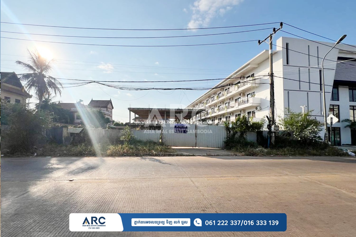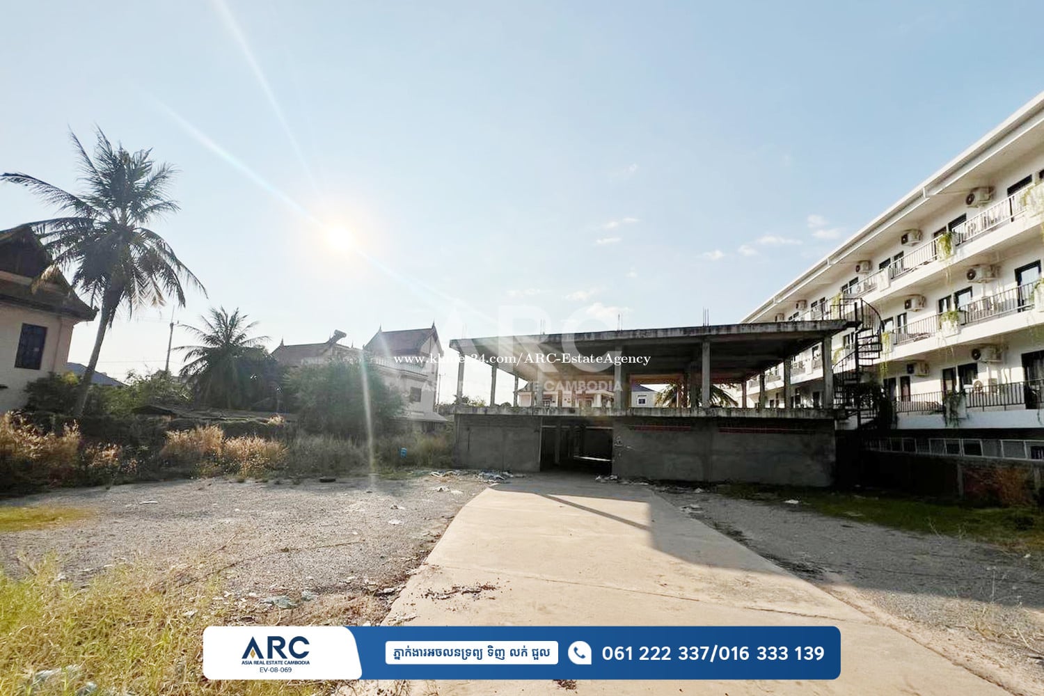 ដីជួលៈ ជាប្រភេទដីប្រកបអាជីវកម្ម ស្ថិតក្នុងទីប្រជុំជន មុខដីធំ ស្ថិតលើផ្លូវបេតុង មានសំណង់អគារកំពុងសាងសង់។ - តម្លៃជួល: $1,000/ខែ - ទំហំដី: 35m × 48m=1459ម៉ែត្រការ៉េ - ផ្លូវ: បេតុង - រាងដី: ស្មើជ្រុង Land for Rent: -Price: $1000/month -Land Size: 35m x 48m=1459sqm -Road: Concrete Road -Shape: Rectangle -Lot: Intermediate Lot -Others: Building is in pending - ពត៌មានបន្ថែមសូមទំនាក់ទំនង / For more detail៖ ☎️ 016 333139 (Smart) / 061222337 (Cellcard) 👉Personal Telegram Agent: https://t.me/arcsiemreap 👉 Website: www.arc.com.kh 👉 អាជ្ញាប័ណ្ណ៖ EV-08-069