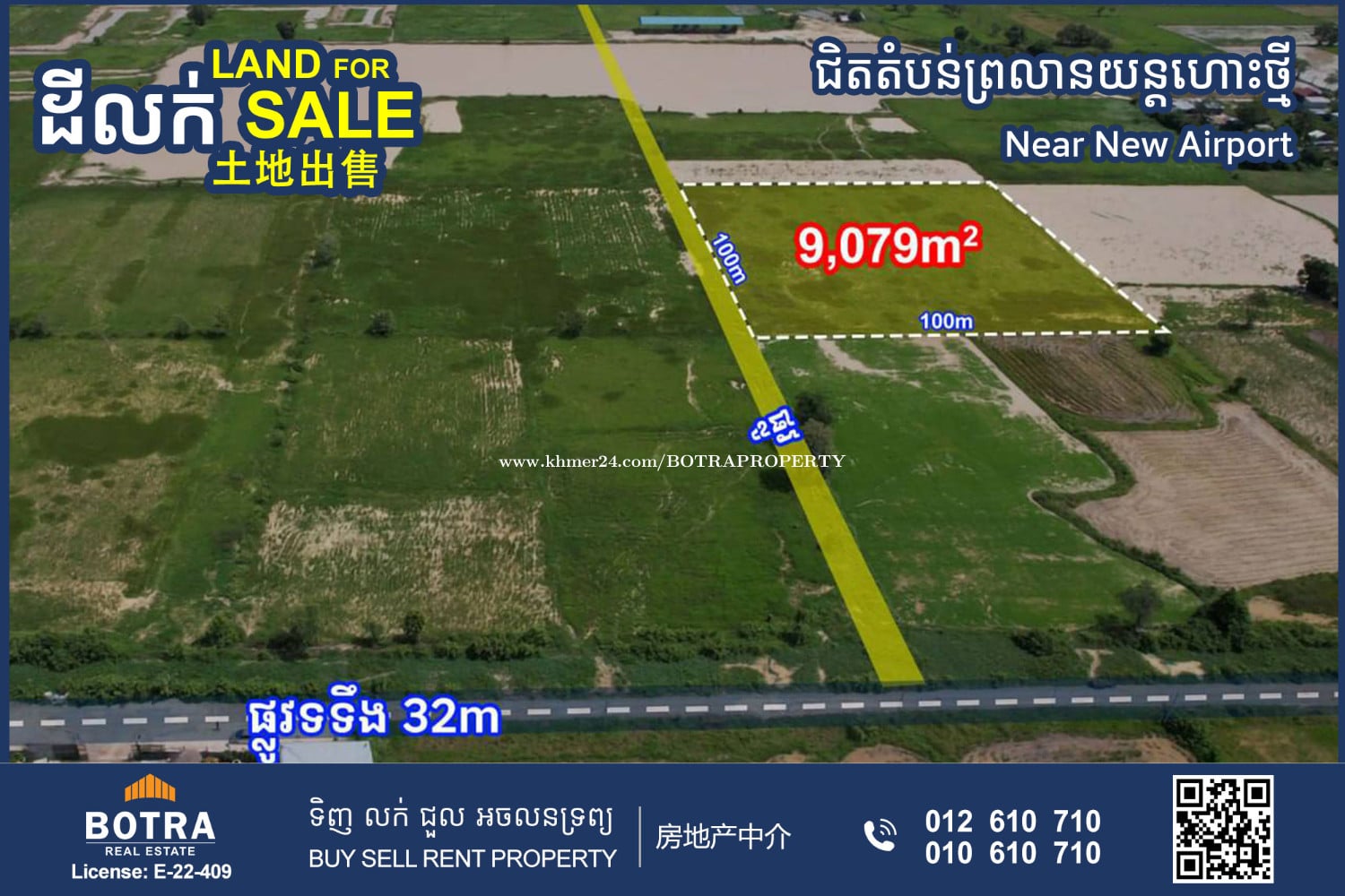 ๐ฃ Land for Sale 100mx100m along state road, new airport area โข Land size: 9,079m2 โข Price: $55/mยฒ โข Hard title L-Map โโโโโโโโโ Contact us now ๐ 012610xxxClick To Call (Cellcard) ๐ 010610xxxClick To Call (Smart) โถ๏ธ t.me/BotraRealEstate (Chat)