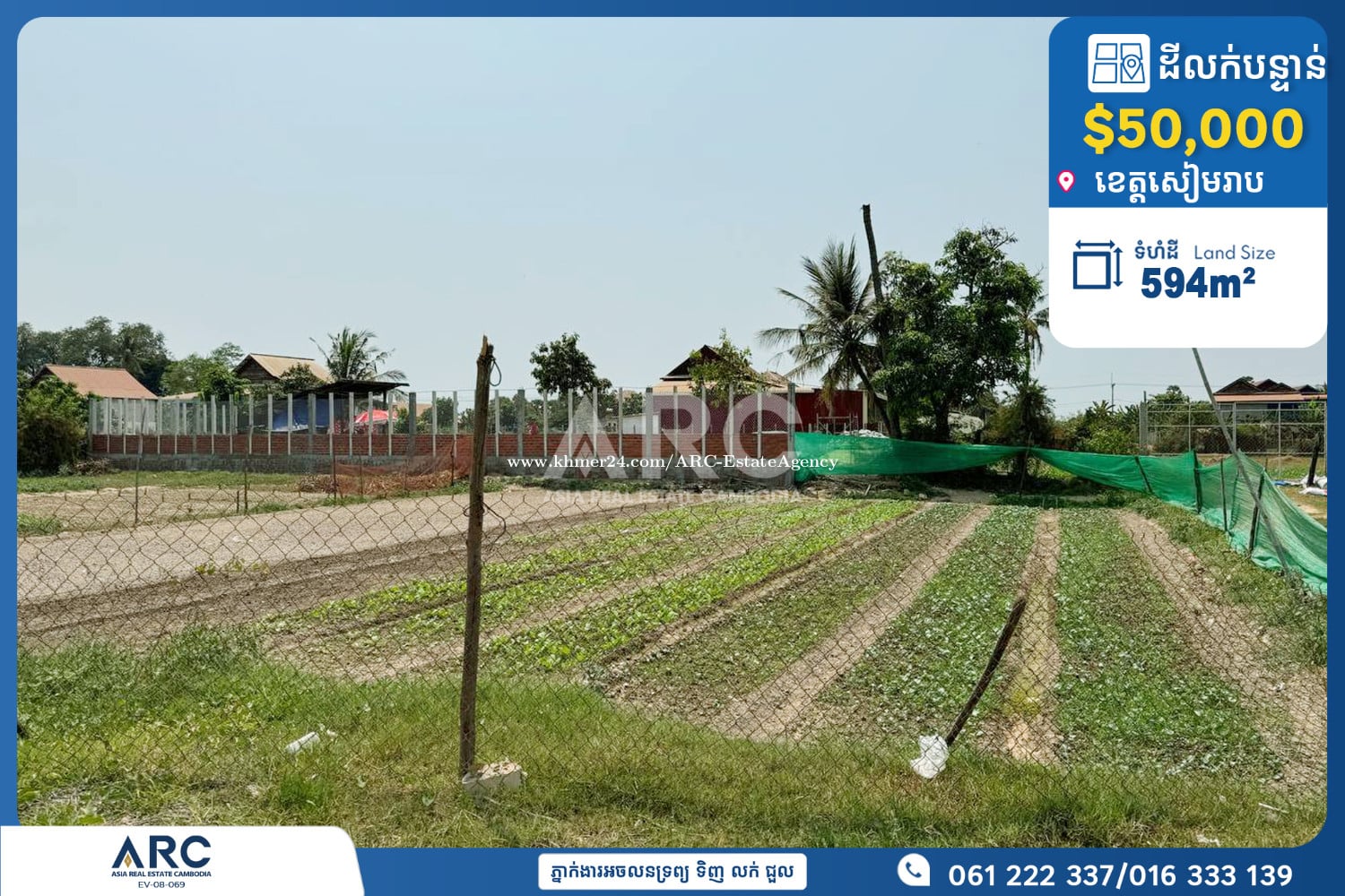 ជាប្រភេទដីលំនៅដ្ឋាន ស្ថិតក្នុងទីប្រជុំជន មុខដីធំ កម្មសិទ្ធប្លង់រឹង តម្លៃប្រញាប់ ធូរថ្លៃ (ដោះស្រាយជាមួយធនាគារ) - តម្លៃលក់: $50,000 - ទំហំដី: 28,7m × 19,6m=594ម៉ែត្រការ៉េ - ផ្លូវ: ក្រួសក្រហម - រាងដី: ជិតស្មើជ្រុង - ពត៌មានបន្ថែមសូមទំនាក់ទំនង / For more detail៖ ☎️ 016 333139 (Smart) / 061222337 (Cellcard) 👉Personal Telegram Agent: https://t.me/arcsiemreap 👉 Website: www.arc.com.kh 👉 អាជ្ញាប័ណ្ណ៖ EV-08-069