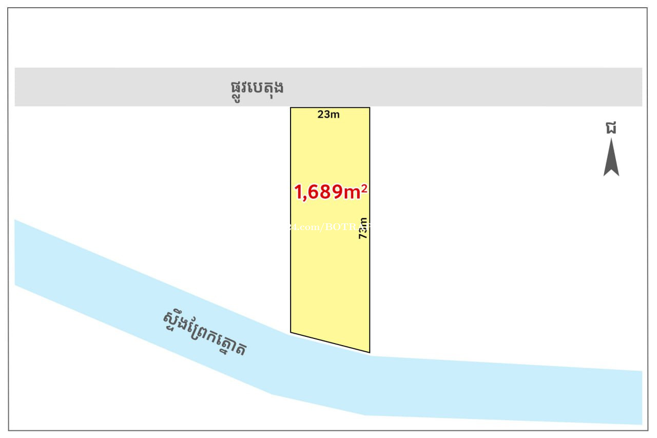 ๐ฃ Land for Sale along concrete road, along Prek Thnaot Canal, Cherng Ek commune โข Size: 1,689mยฒ (Frontage: 23m) โข Price: $450,000 โข Hard title L-Map โโโโโโโโโ Contact us now ๐ 012610xxxClick To Call (Cellcard) ๐ 010610xxxClick To Call (Smart) โถ๏ธ t.me/BotraRealEstate (Chat)