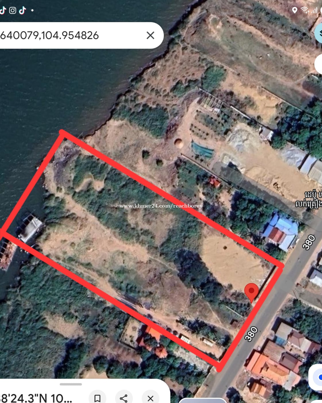 ដីលក់រឺជួលជាប់ផ្លូវជាតិលេខ380 ក្រុងអរិយក្សត្រ ទំហំដី ទទឹង 45m បណ្ដោយ 100m ប្លង់រឹង លក់1ម៉ែត្រការ៉េ/555$ និងជួល 2500$/1ខែ ខាងមុខដីល្អជាប់ផ្លូវជាតិ ខាងក្រោយទល់និងទន្លេរ ទីតាំង ឃុំព្រែកអំពិល ក្រុងអរិយក្សត្រ ខេត្តកណ្ដាល Tel: 010865xxxClick To Call, 017865xxxClick To Call