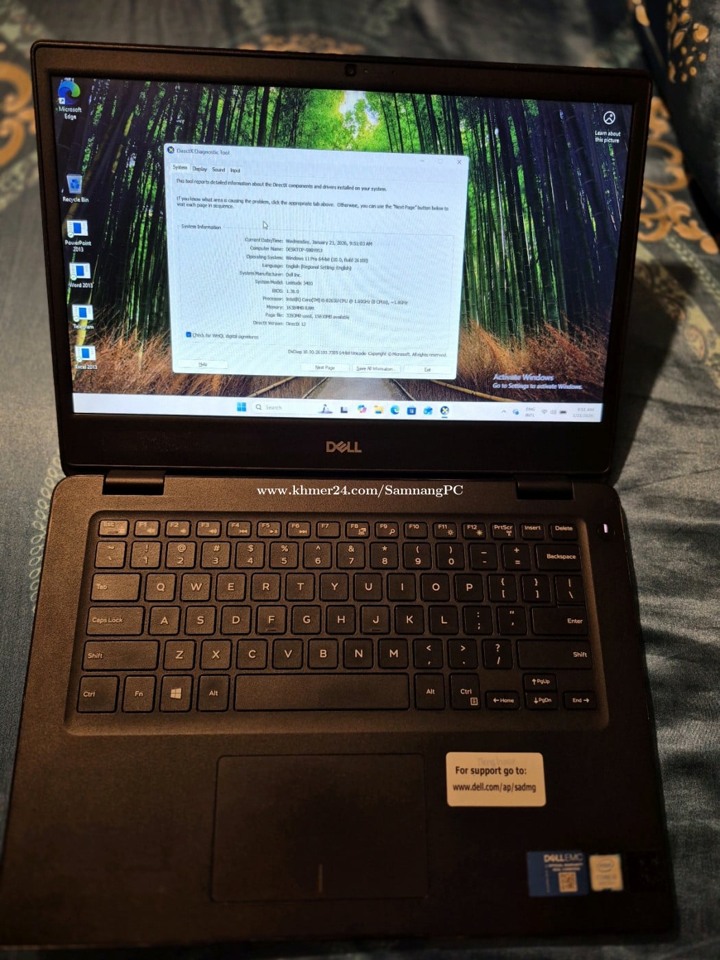 Laptop Dell 3400 i5 8th Ram 16GB SSD 500G good battery and adaptor