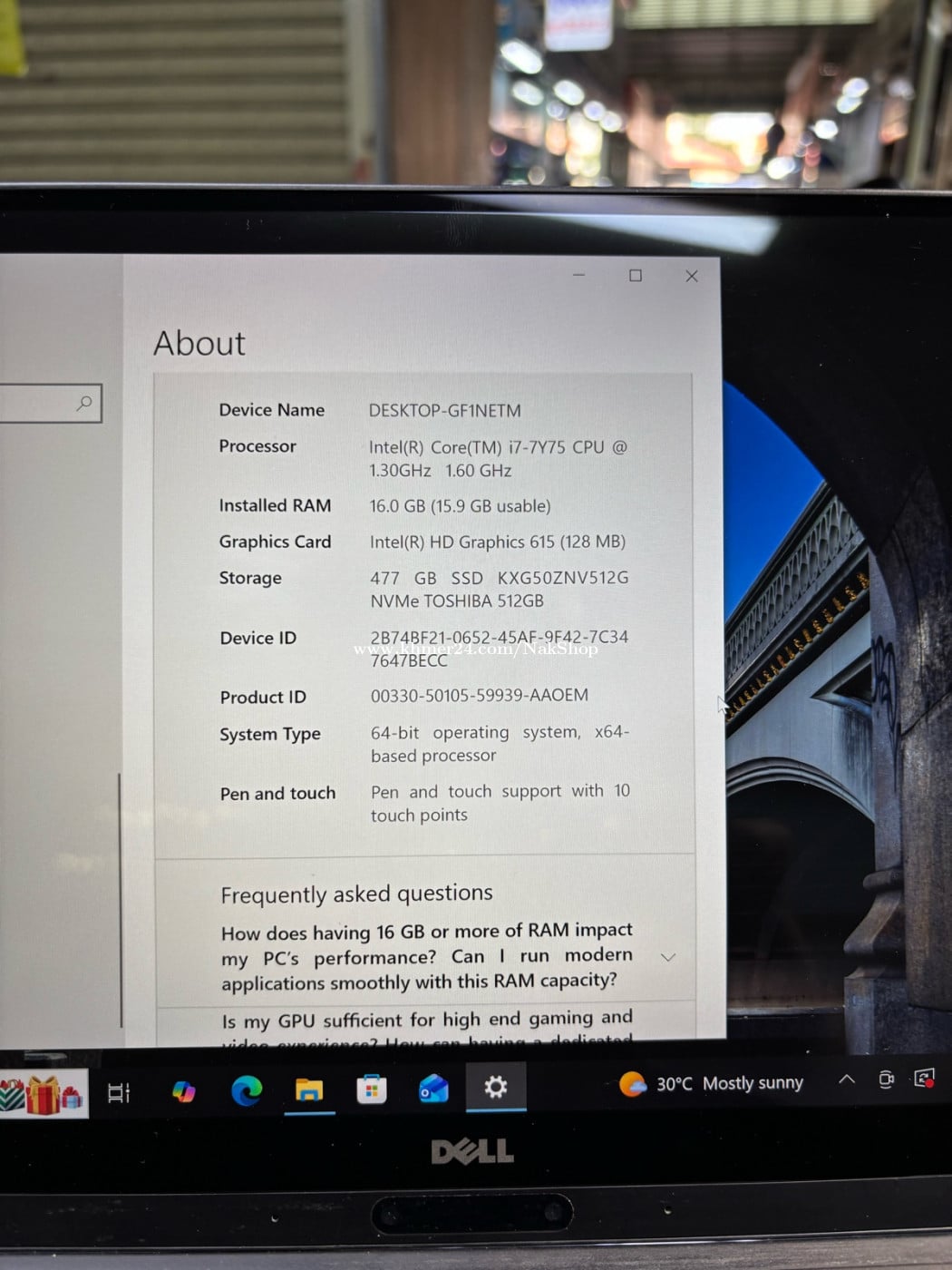 Laptop Dell Ram16G HHD 512G ប្រើថាច់អេក្រង់