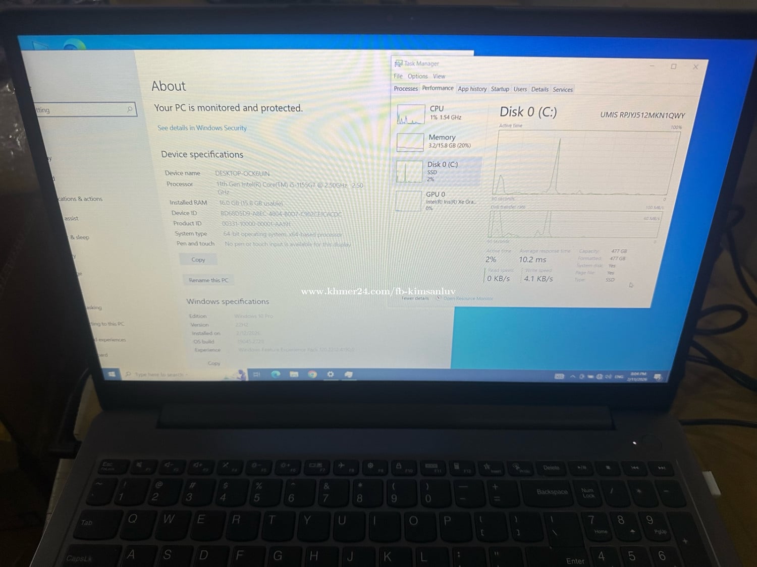 សំបកស្អាត 97% Screenស្អាត អត់ស្នាម -cpu i5 11th -ram 16g -m.2 500g *keyboard and touch pad✅ *webcam✅ *speaker✅ *battery 2H up✅ (Have adapter) Free delivery in pp
