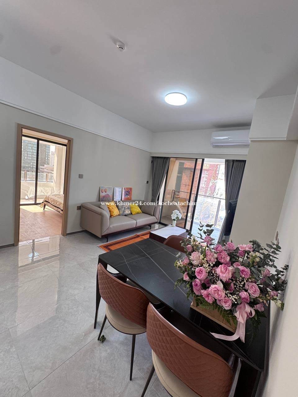 Le Condé BKK1 – 2 Bedroom (12th Floor) ✨ Rental Price: $850 / month ✨ Size: • Gross Area: 90.96m² • Net Area: 68.22m² Includes: ✔️ Management fee ✔️ WiFi ✔️ Fully furnished ✔️ Smart home system