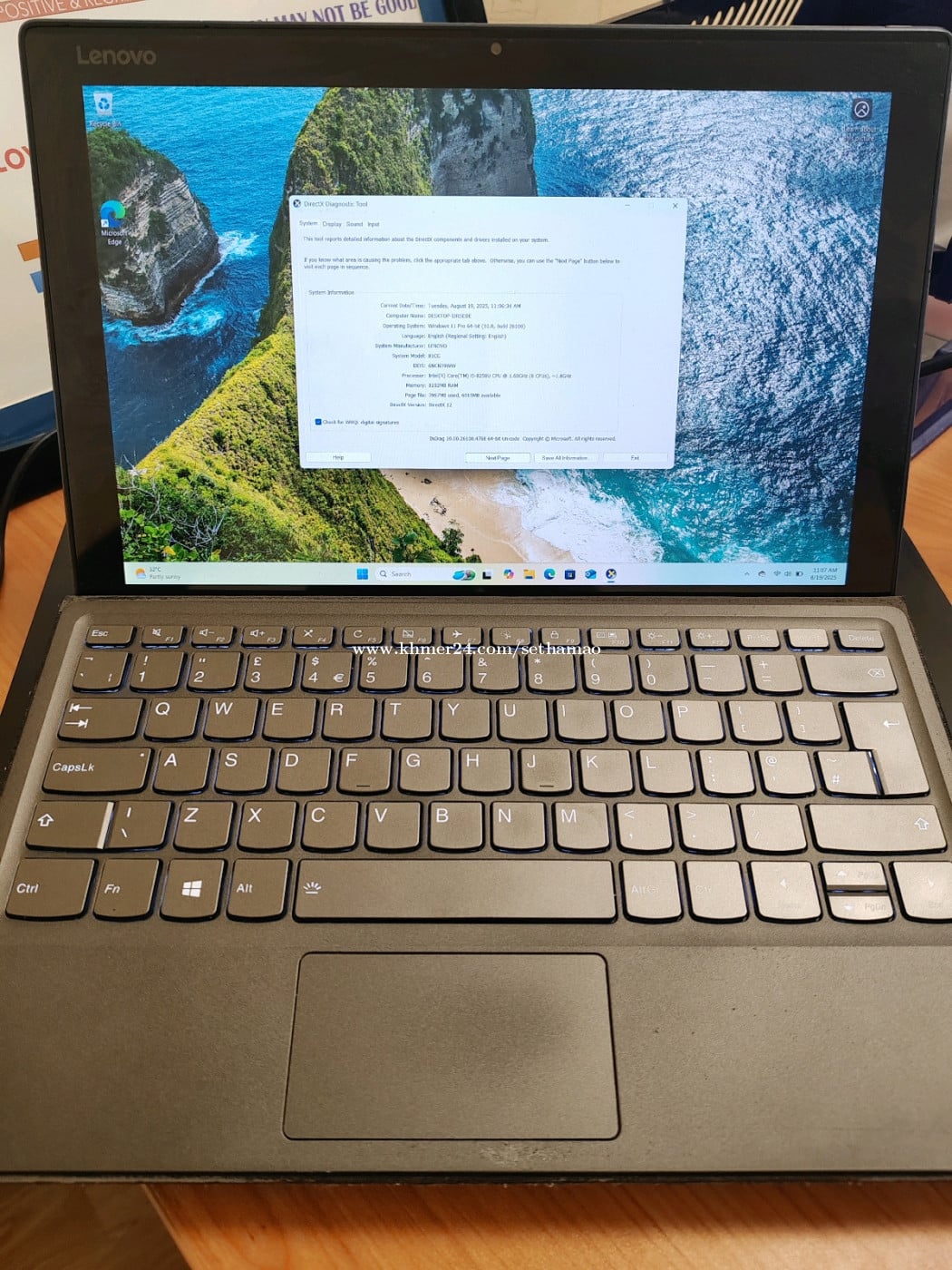 - Lenovo Miix 520 2 in 1 Laptop (PC and Tablets) - System Manufacturer: LENOVO - System Model: 81CG - BIOS: 6NCN39WW CPU: Intel(R) Core(TM) i5-8250U (8 CPUs), ~1.8GHz - RAM: 8GB DDR4 - Battery ๐ Good 2h up - Screen 12.2" FHD IPS - Storage: 256GB SSD - Graphics: Intel UHD 620 - Wifi Bluetooth Fingers print โ - Detachable Keyboard Backlit โ - Overall Condition 95% Price: 210$ Call & Telegram: 081233xxxClick To Call Location: Phnom Penh