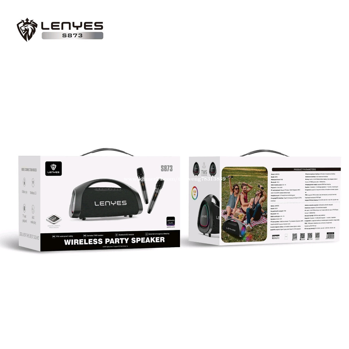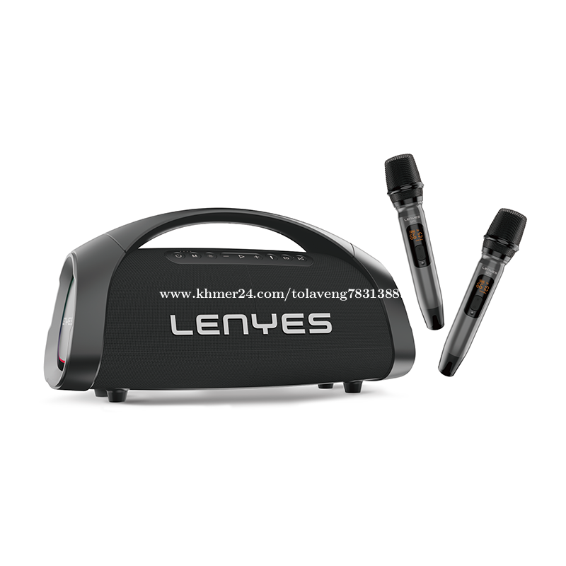 Lenyes Speaker S873 កំលាំង៤០០W ទិញថ្មី មិនដែលប្រើចង់លក់វិញ, បាសនៅក្នុងប្រអប់ ថ្មី. ពុំដែលដកចេញពីប្រអប់. Brand Lenyes Item dimensions L x W x H53 x 22.5 x 29 Centimeters Connectivity TechnologyAUX, Bluetooth, Tf Card, USB ColourBlack Compatible DevicesLaptop, Smartphone, Tablet, Tf Card, Usb Drive Mounting TypeFreestanding Massive 400W Peak Power Output: Experience deep bass and crisp highs for large parties, events, or outdoor gatherings with immersive sound quality. Two Wireless UHF Microphones: Includes two wireless mics for seamless karaoke sessions, speeches, or performances — no tangles, no delay. 30000mAh Long-Lasting Battery with PD Fast Charging: Enjoy up to 10 hours of nonstop playtime and recharge quickly with 60W PD fast charging support. IPX6 Waterproof & RGB Lights: Designed to handle splashes and outdoor use, with vibrant RGB lighting that syncs to your music for an energetic party atmosphere. TWS Mode & Lenyes Audio App Connectivity: Pair two S873 speakers for stereo sound, and customize your audio and lighting modes through the Lenyes Audio App for a personalized experience.
