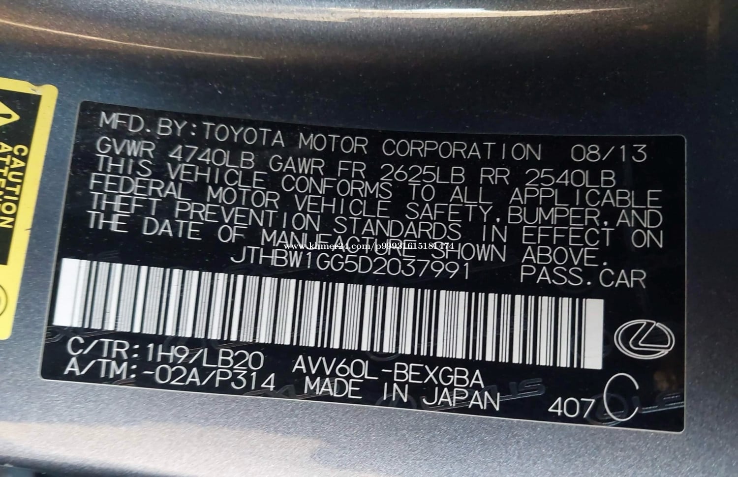 Lexus ES300h 2013 Full តម្លៃពិសេសសំរាប់ការកក់តាមផ្លូវ ធានាម៉ាសុីនប្រអប់លេខ 60 ថ្ងៃ ធានាអាគុយនិងABS 30 ថ្លៃ