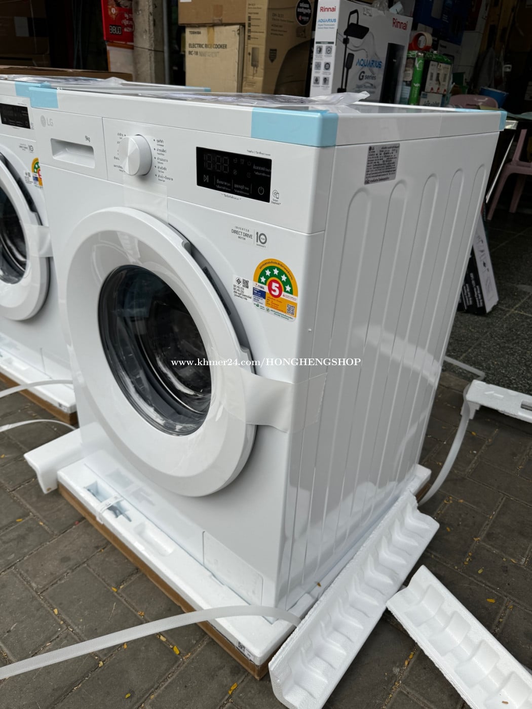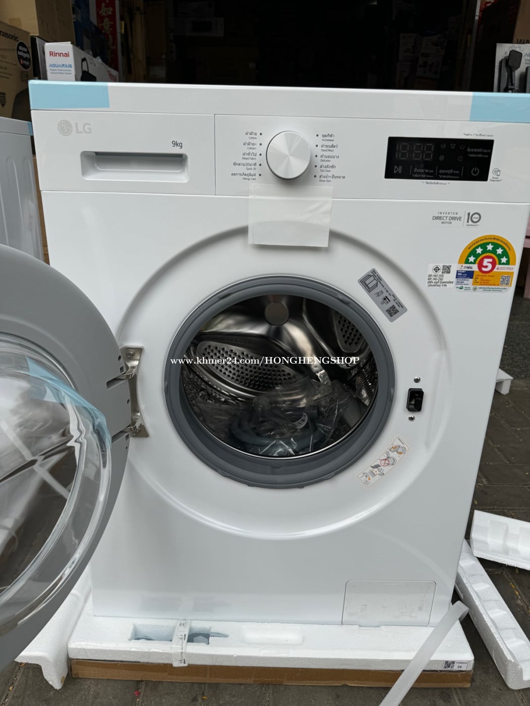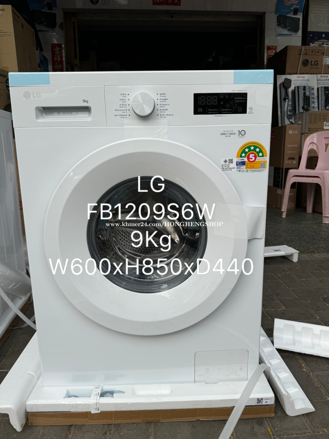 -មានលក់នៅហាង ហុងហេង#416Eo st.274 (HONG HENG Electronic Shop ) -FB: Hong Heng Electronic shop Tel : 011734xxxClick To Call ( Line, Viber & we chat ) 0888896xxxClick To Call ( Telegram ) 099771xxxClick To Call 069771xxxClick To Call -ជាម៉ាស៊ីនបោកគក់ចំហៀងថ្មីចំណុះ9KG ដែលមានការប្រើប្រាស់ថាមពលអគ្គិសនីតិចនិងបោកគក់ជាមួយនឹងទឹកក្តៅ បោកគក់បានស្អាតល្អមិនទក់សាច់ក្រណាត់ខ្លាំង។ -New LG Washing machine inverter Direct Drive 9kg -មានការធានារយៈពេលមួយឆ្នាំលើគ្រឿងបន្លាស់និងសេវាជួសជុល លើខមប្រេះសររយះ10ឆ្នាំ -1 year warranty on repairing service and spare parts.For more detail please contact us.