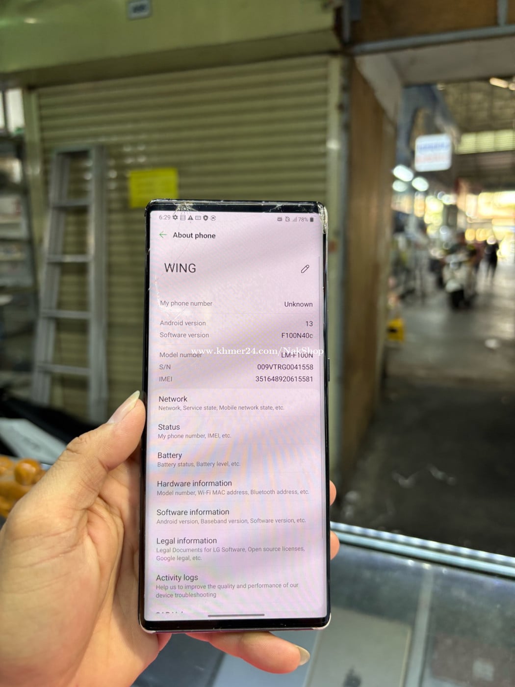 LG Wing 256G Ram8G Sim1 បែកខ្នងនិងថាច់ អត់ដើរcamreaមុខ