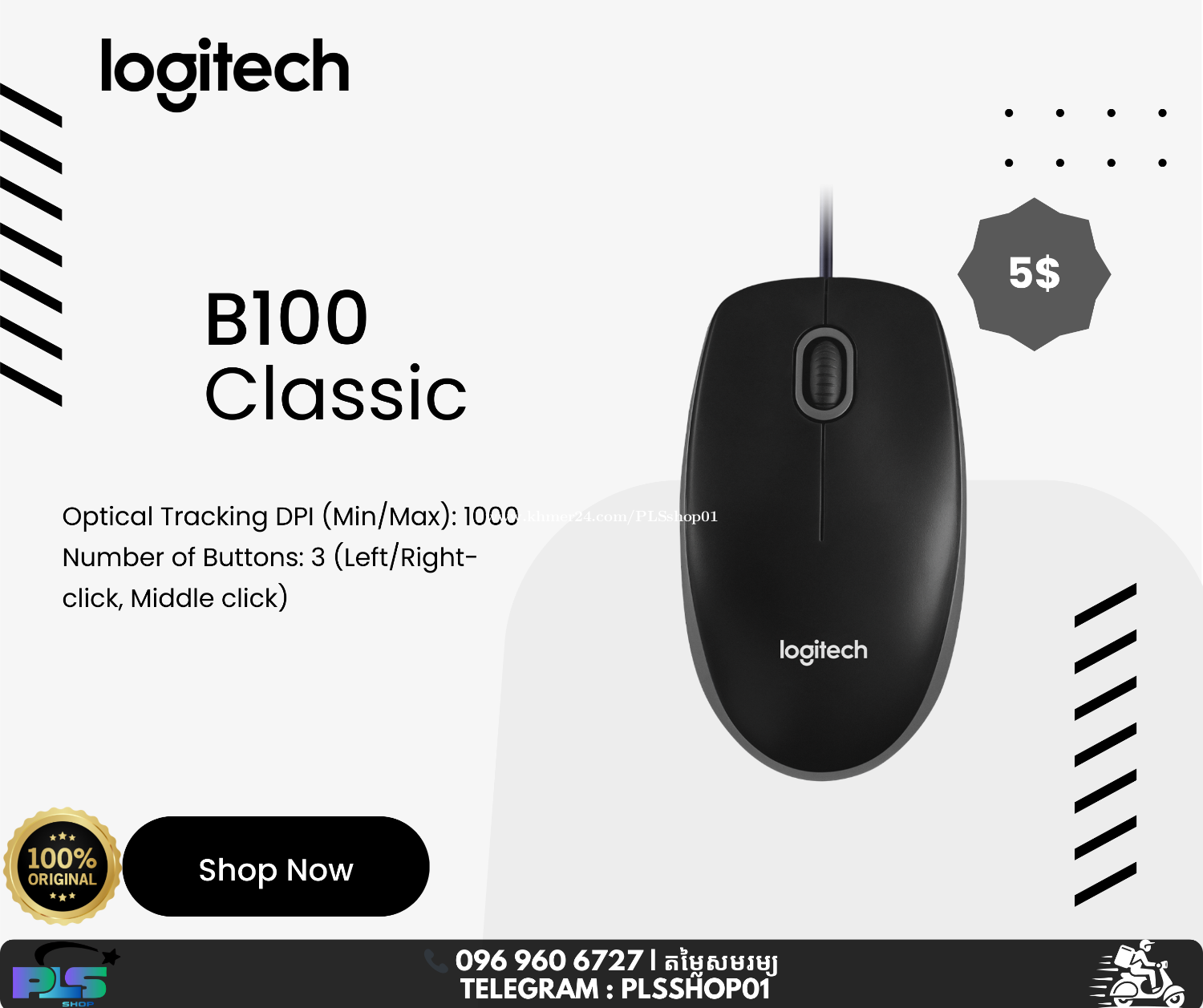 - Optical Tracking DPI (Min/Max): 1000 - Number of Buttons: 3 (Left/Right-click, Middle click) - Line-by-line scrolling - Scroll Wheel: Yes, optical - Cable length: 180 cm *Warranty: 3Years