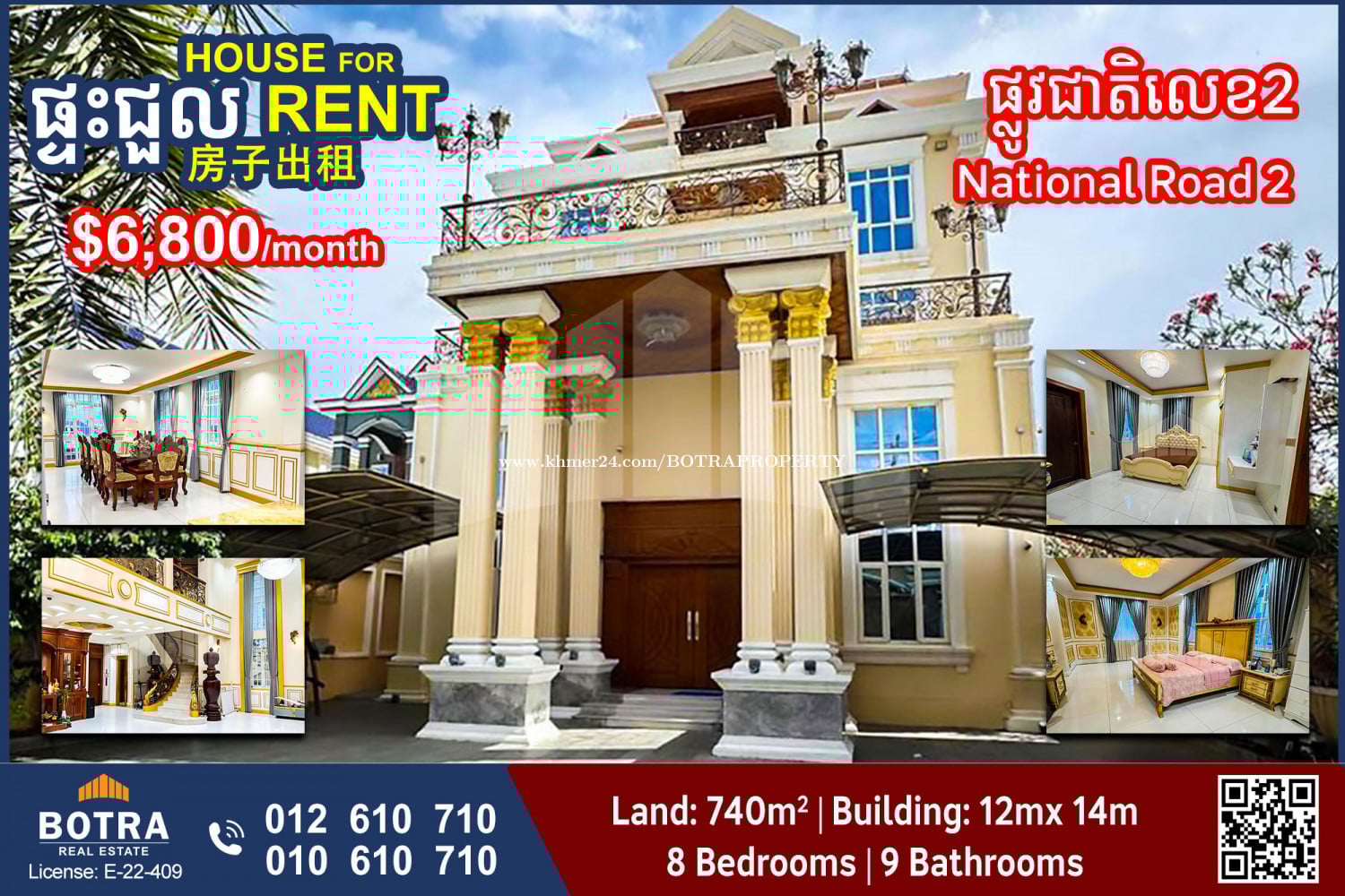 ๐ก Luxury Villa for Rent #SN0558 ๐ National Road 2, Near New Airport โข Land Area: 740m2 โข Villa Size: 12mx 14m (4 floors) โข 8 Bedrooms | 9 Bathrooms โข Full Furniture | Elevator โข Generator โข Parking: 10 spaces ๐ Price: $6,800/month โโโโโโโโโ Contact us now ๐ 012610xxxClick To Call (Cellcard) ๐ 010610xxxClick To Call (Smart) โถ๏ธ t.me/BotraRealEstate (Chat)