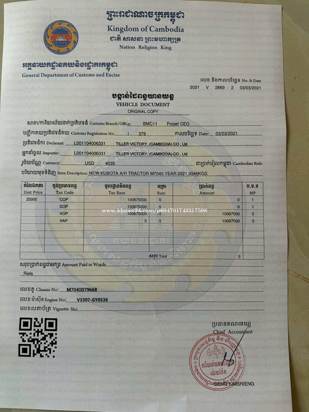 ត្រាក់ទ័រM6040 ឆ្នាំ2021 លក់ប្រញាប់លុយ តម្លៃ12500$ចរចា ត្រាក់នៅសំនុំស៊ីន ម៉ាស៊ីន ប្រអប់លេខ 0972769xxxClick To Call