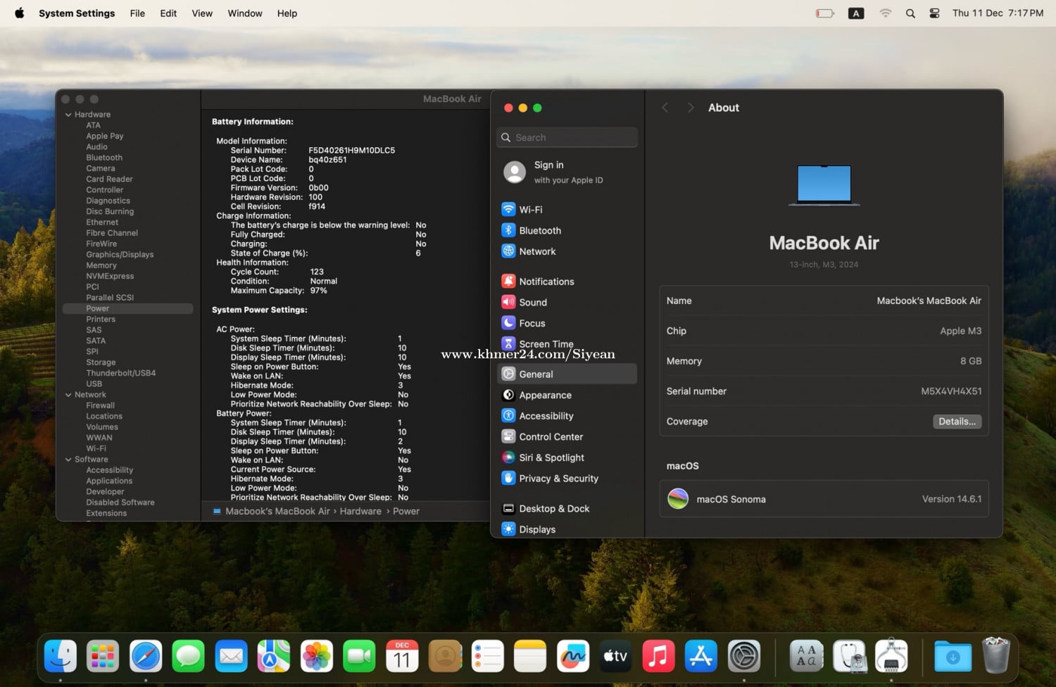 🚀 MacBook Air 13-inch (M3, 2024) – ដំណើរការលឿន និងស្ថិតក្នុងសភាពល្អខ្លាំង • ✔️ Chip: Apple M3 • ✔️ RAM: 8GB • ✔️ SSD: 256GB • ✔️ Battery Cycle: 123 (Health 97%) • ✔️ macOS Sonoma 14.6.1 • ✔️ មាស៊ីនស្អាត 99% មិនមានបញ្ហា • ✔️ ប្រើសម្រាប់: Office, Study, Zoom, Light Editing, Online work • ✔️ ល្បឿនខ្លាំង, ស្រាលងាយយកទៅគ្រប់ទីកន្លែង 💰 តម្លៃលក់: $700 (Fix) 📦 មានតេស្តសូម មកសាកល្បងបាន 📲 ទំនាក់ទំនង៖ 098334xxxClick To Call