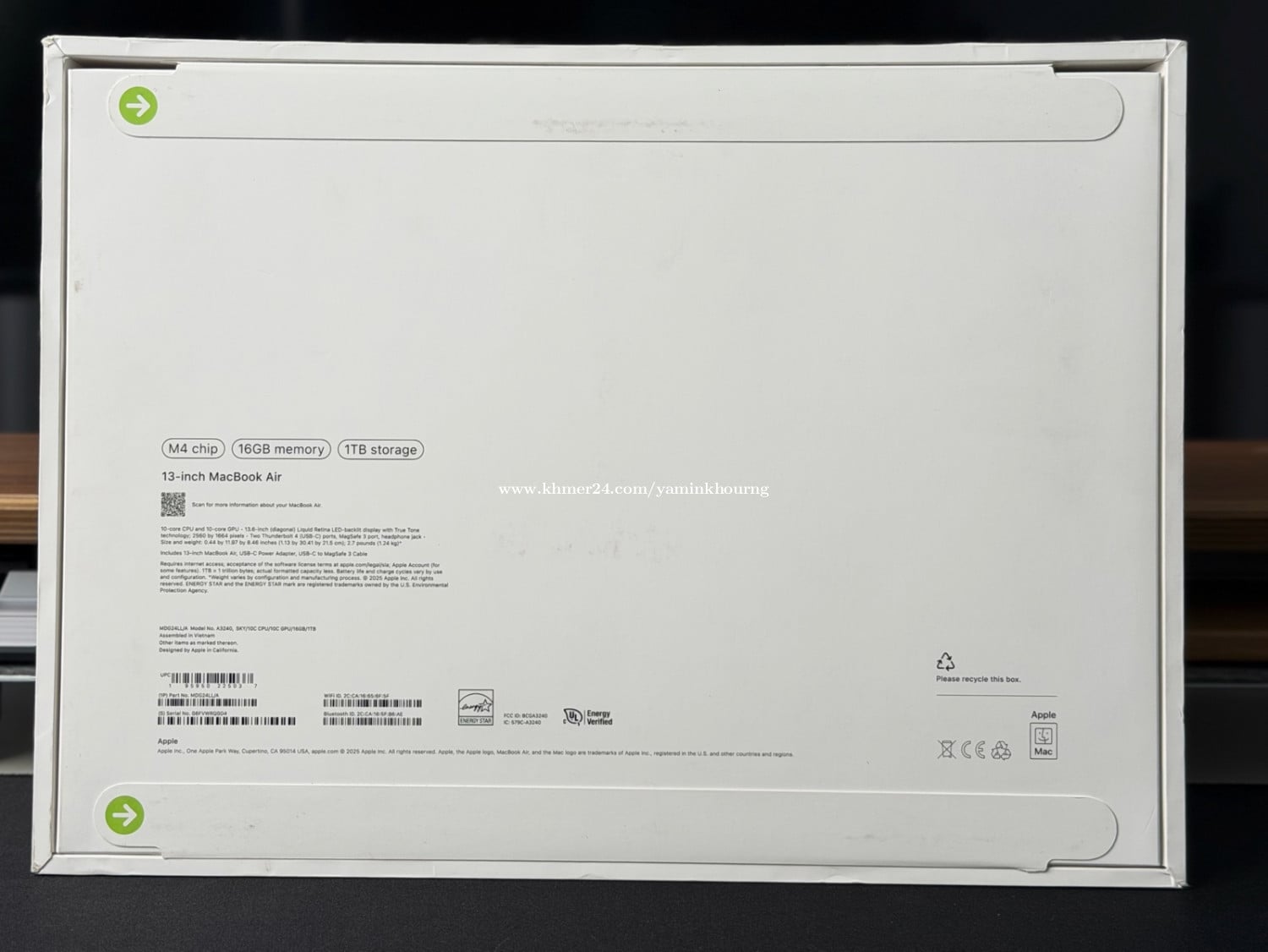 Macbook Air M4 (13-inch) សម្រាប់ការងារ:Design,Edit Video, Coding, Officer ថ្មីប្រអប់:New Seal warranty 1year hardware Color: Silver Condition:100% CPU : 10CPU/10GPU RAM : 16GB Storage : 1TB Screen : 13.6-inch(2560x1664) Weight :1.24 kg Price : 1330$ free:កាបូប screen protector ———————————————————— •Telegram Channel http://t.me/BeeMarket25 •ទីតាំងផ្ទះលេខ 3CDE, ផ្លូវ 230,ម្តុំអាងស្តុកទឹកអូឡាំពិក •ព័ត៌រមានបន្ថែម ទំនាក់ទំនងផ្ទាល់ តាមលេខទូរសព្ទ័ •Tel :015512xxxClick To Call