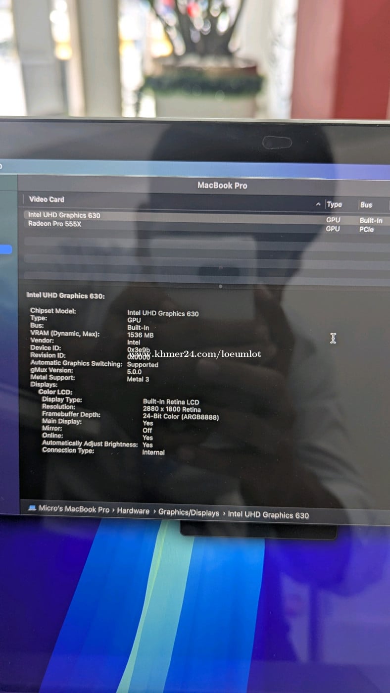 Macbook pro 15" 2018 Ram16 Storage 256G 98% Like New ថ្មរនៅកាន់ សាកបាន 150ដងជាង Ram16 Storage: 256 Graphics: Radeon Pro 555x អត់មានបញ្ហាអីទាំងអស់ នៅស្អាតដូចថ្មី 0713858xxxClick To Call 069687xxxClick To Call