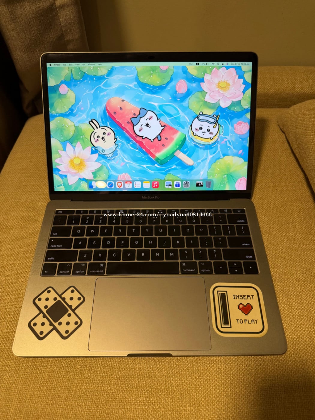 Macbook Pro 2017 non touch bar with 128gb 8GB of ram. Battery counts : 80 នៅស្អាតដូចរូបភាព តែអត់មានឆ្នាំងសាក !