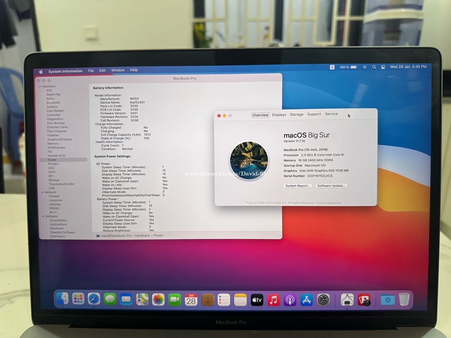 MacBook Pro 2019 15.4 inch Core I9 16G 512G. ដំណើរល្អណាស់។