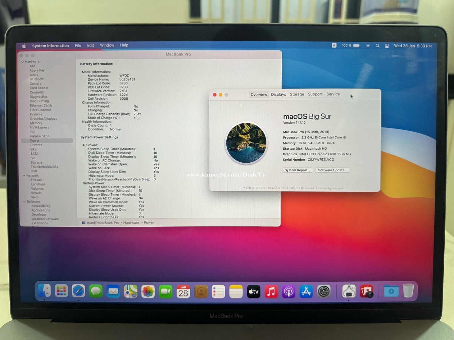 MacBook Pro 2019 15.4inch Core I9 16G 512G. ដំណើរការល្អ ថ្មកាន់។