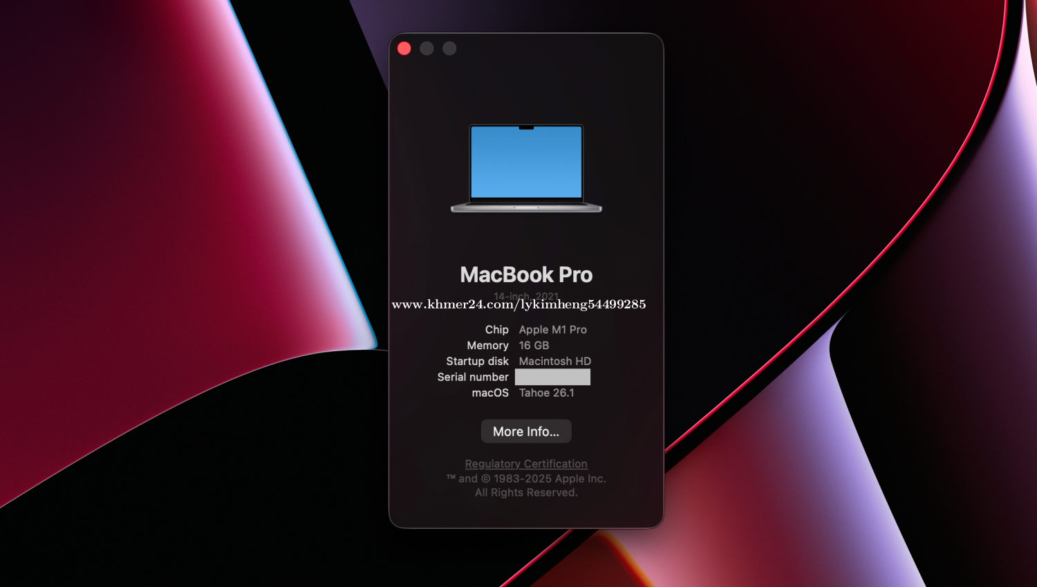 Model: MacBook M1 Pro 2021 14" (99% ) CPU: Apple M1 Pro / RAM 16GB / SSD 512GB / Battery Health 92% / Screen 14" Liquid Retina XDR Display ( Refresh Rate 120Hz ) Pre installed warp and mate screen protector. Can check before buying too.(Price is negotiable)