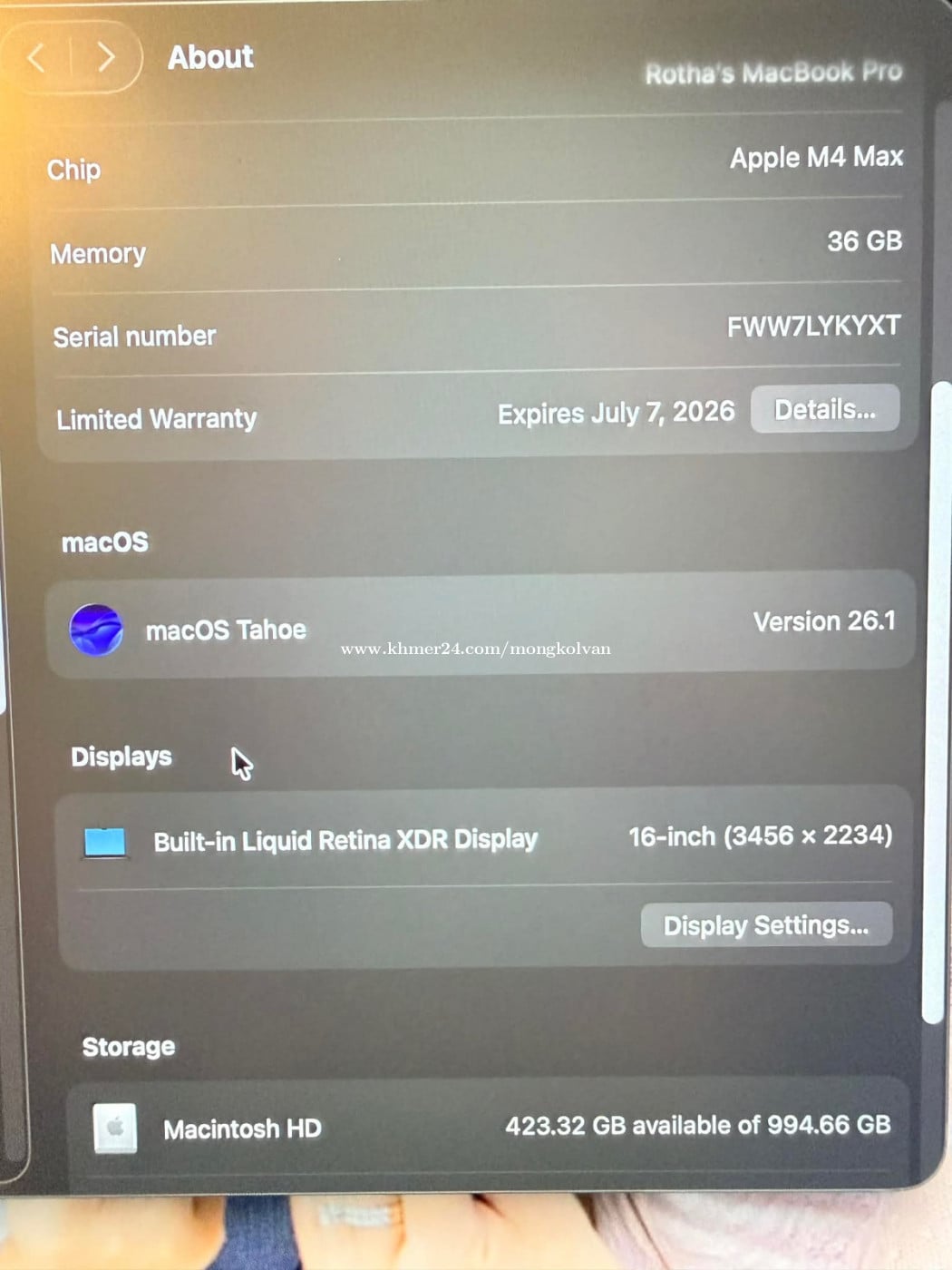 MacBook Pro M4-Max Chip 16 inch ✅ Storage 1TB | 14C-32GPU | Ram 36GB ✅ Screen 16.2 inch Liquid Retina XDR Display ✅ condition 99% ធានាមិនមានបាក់បែក ✅ Still have Apple Warrant Telegram : 077336xxxClick To Call