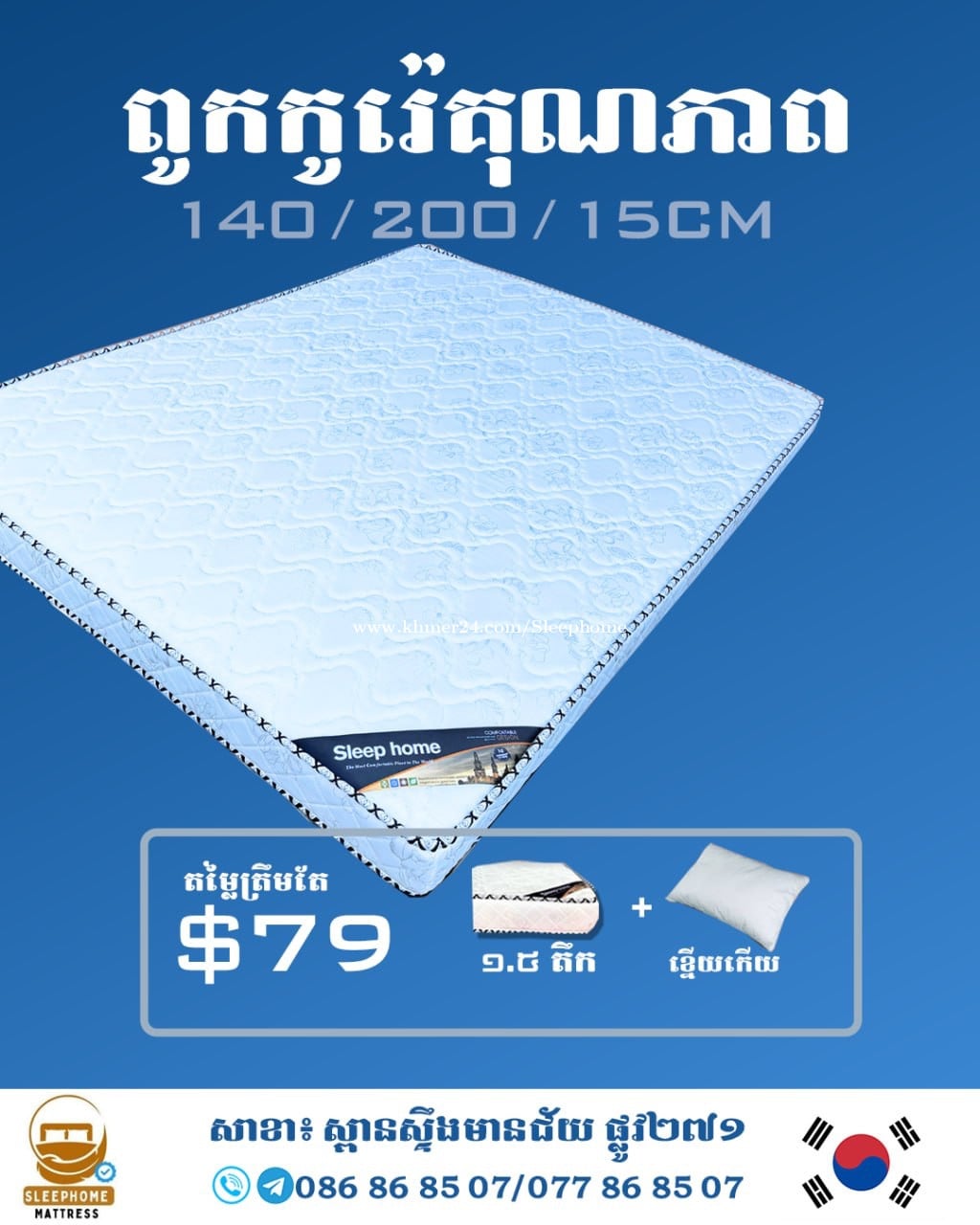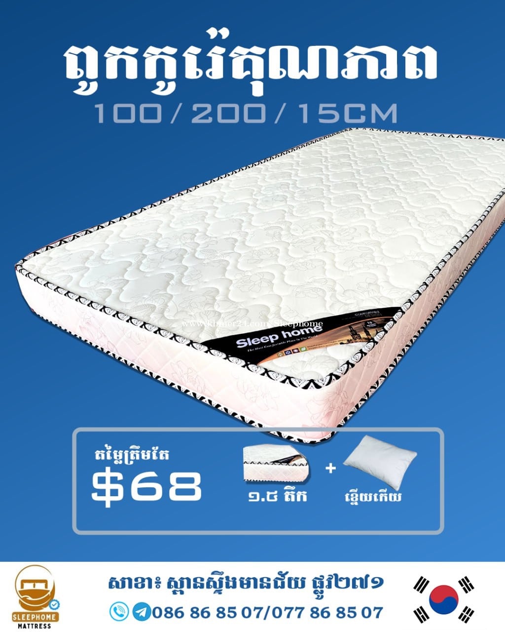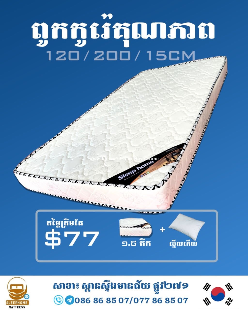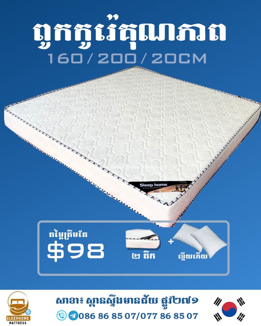 ✨ គុណភាពពិសេស – ផលិតពីប្រទេសកូរ៉េ 🛏️ ពូកសុខភាពធានា ១០ ឆ្នាំពេញ ⚡ ដឹកជញ្ជូនរហ័សក្នុងថ្ងៃតែមួយ 📏 មាន ៣៦ ទំហំផ្សេងៗ 🎁 ពិសេសសម្រាប់ពេលខ្លីនេះប៉ុណ្ណោះ! 👉 ទិញពូកសុខភាពទទួលបាន អំណោយឥតគិតថ្លៃ (ខ្នើយ / ឈុតកម្រាលពូក) 🔥 ប្រញាប់ឡើង – បញ្ជាទិញឥឡូវនេះ ចំនួនមានកំណត់! 📍 សាខា : ស្ពានស្ទឹងមានជ័យ ផ្លូវ ២៧១ 086868xxxClick To Call Telegram > https://t.me/Sleephomes #mattress