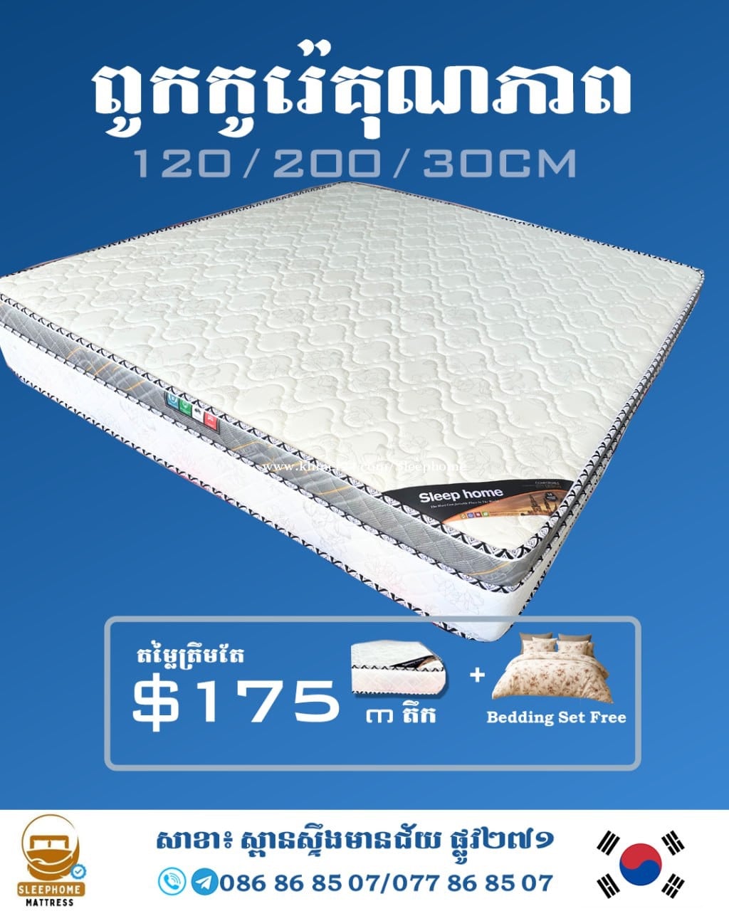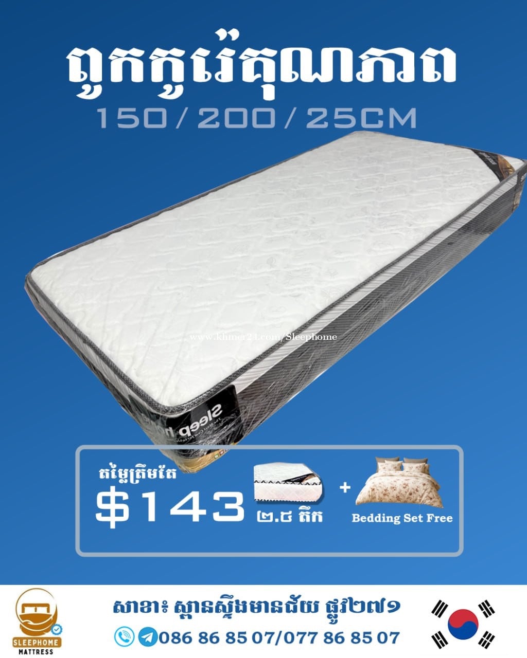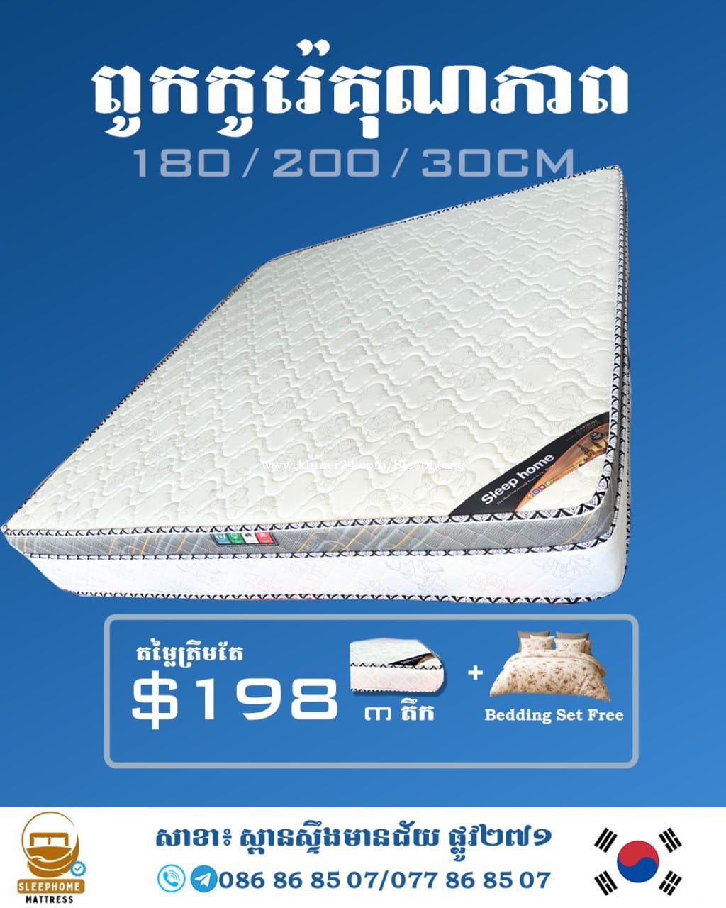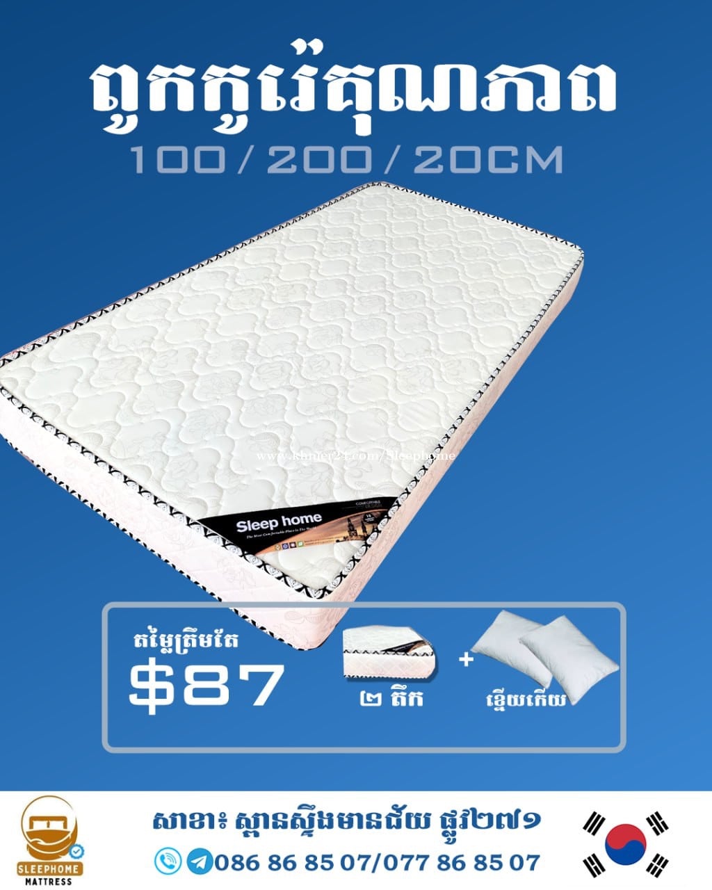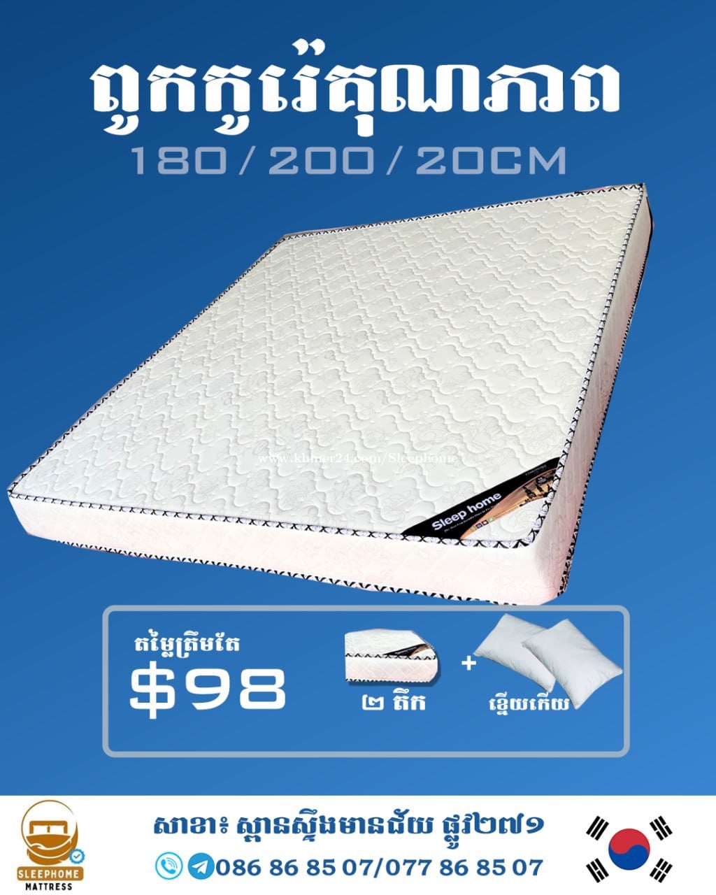 ✨ គុណភាពពិសេស – ផលិតពីប្រទេសកូរ៉េ 🛏️ ពូកសុខភាពធានា ១០ ឆ្នាំពេញ ⚡ ដឹកជញ្ជូនរហ័សក្នុងថ្ងៃតែមួយ 📏 មាន ៣៦ ទំហំផ្សេងៗ 🎁 ពិសេសសម្រាប់ពេលខ្លីនេះប៉ុណ្ណោះ! 👉 ទិញពូកសុខភាពទទួលបាន អំណោយឥតគិតថ្លៃ (ខ្នើយ / ឈុតកម្រាលពូក) 🔥 ប្រញាប់ឡើង – បញ្ជាទិញឥឡូវនេះ ចំនួនមានកំណត់! 📍 សាខា : ស្ពានស្ទឹងមានជ័យ ផ្លូវ ២៧១ 086868xxxClick To Call Telegram > https://t.me/Sleephomes #mattress