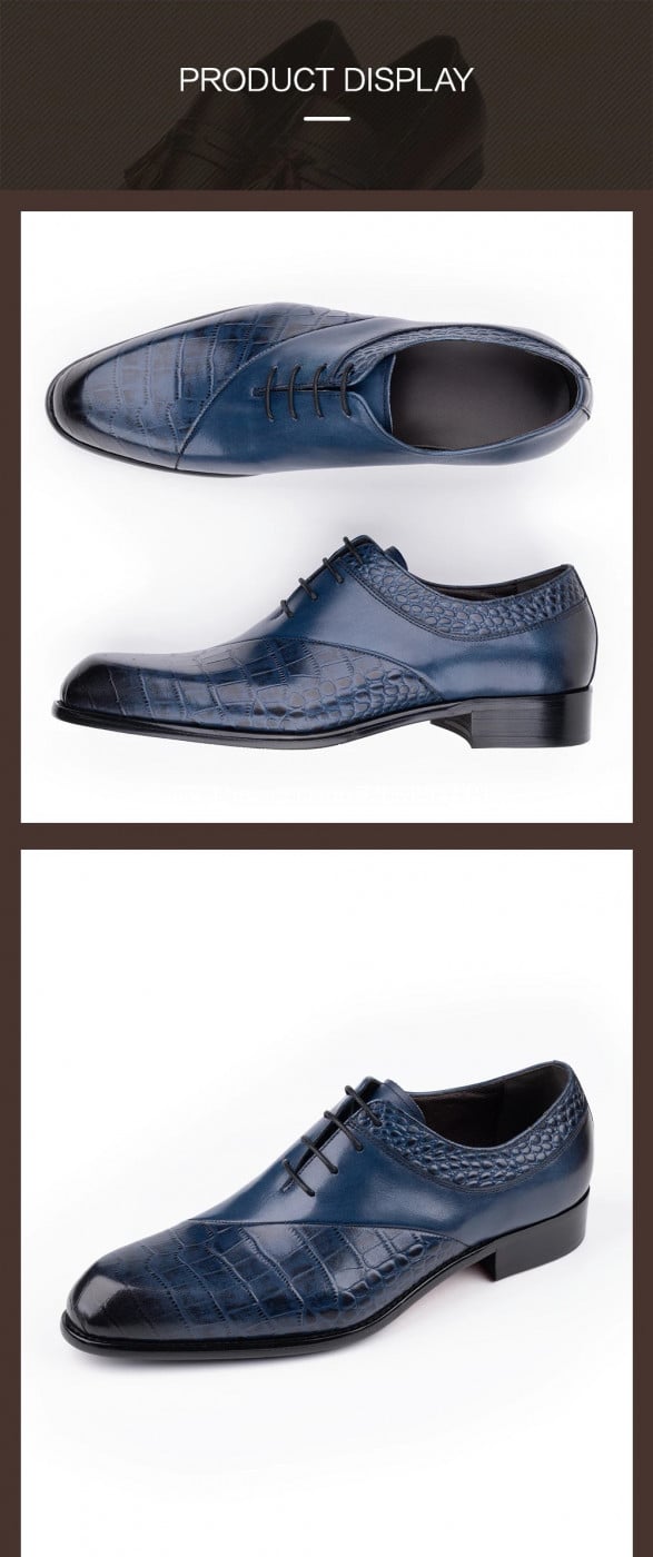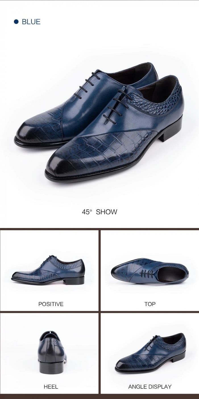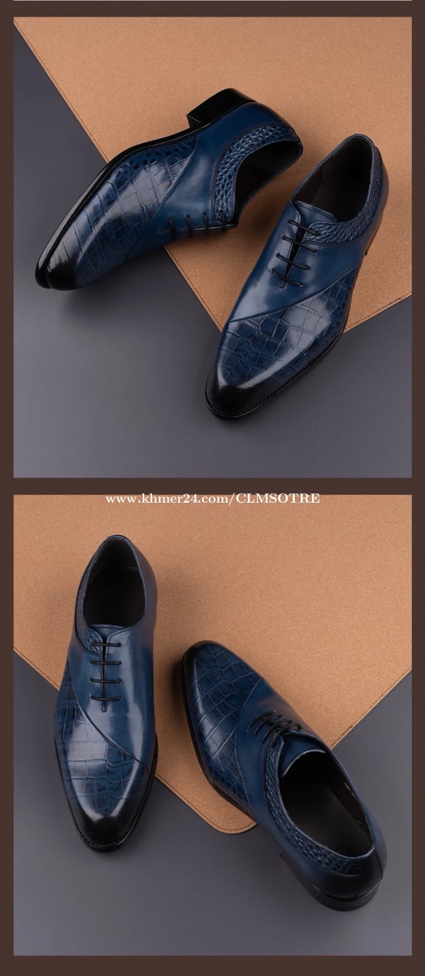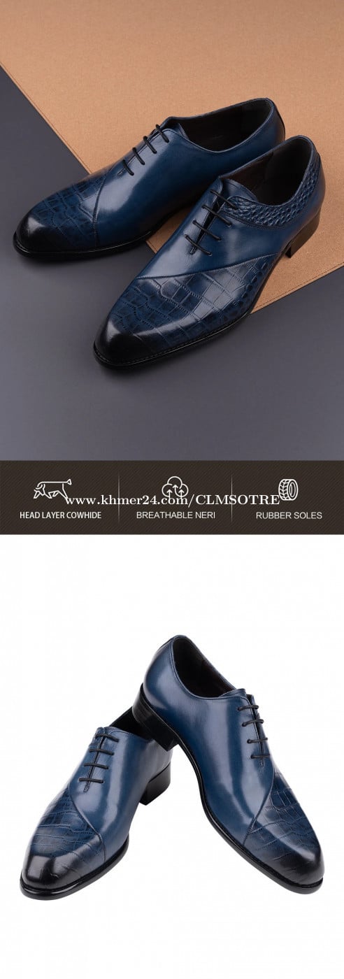 Men's Blue Oxford Handmade Real Leather Material New Retro Design Office Party Wedding Shoes . ប្រេន ធានា30ថ្ងៃ have size 39 40 41 42 43 44 45 46 47 48 49 / Pre-order because it hand made
