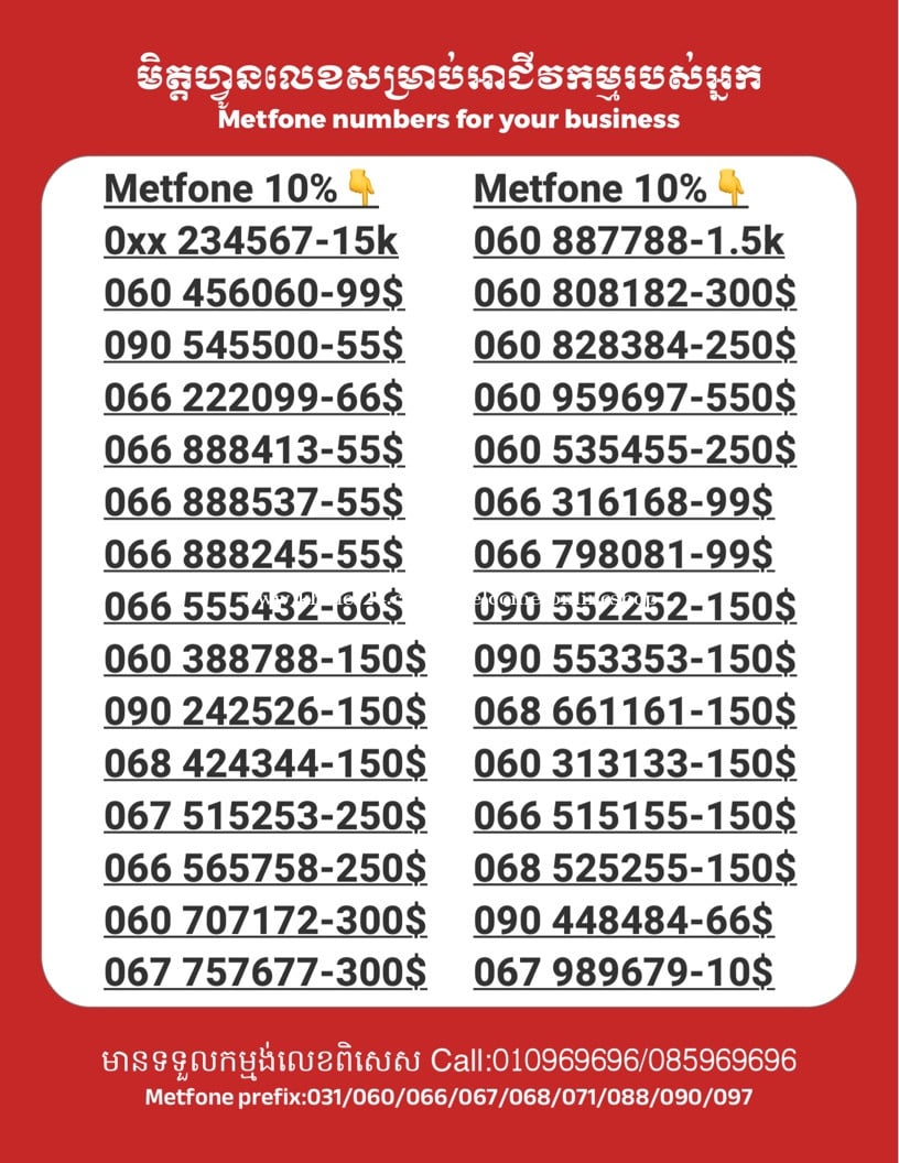 Metfone លេខសម្រាប់អាជីវកម្ម