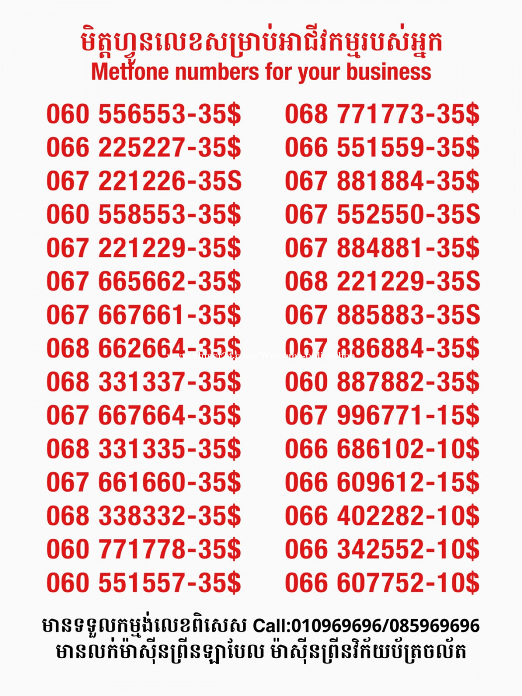 មានលក់លេខពិសេស មានទទួលកម្មង់លេខពិសេស មានលក់ម៉ាស៊ីនព្រីនឡាបែល មានលក់ម៉ាស៊ីនព្រីនវិក័យប័ត្រ មានលក់សម្ភារៈប្រើប្រាស់ក្នុងគ្រួសារ Smart Prime II 1=30$ Smart hero 1=40$ ទូរសព្ទថ្មីក្នុងប្រអប់ លក់ធូរៗរហូតអស់ពីស្តុក អាចប្រើជាឧបករណ៍សម្រាប់ស៊ែរ wifi បាន ទំនាក់ទំនង(ខ្មែរ | English | 中文):010969696 | 085969696 Telegram: https://t.me/W9696 Telegram group: https://t.me/konkonnada អាសយដ្ឋាន:ផ្ទះលេខ២៣ ផ្លូវបេតុងលេខ១ ភូមិទួលពង្រ សង្កាត់ចោមចៅ ខណ្ឌពោធិ៍សែនជ័យ រាជធានីភ្នំពេញ ទីតាំង https://goo.gl/maps/8moqW4iTHUfJEvWQ9 ដើម្បីស្វែងរកលេខអាជីវកម្មដែលលោកអ្នកពេញចិត្ត សូមចូលទៅកាន់:https://www.khmer24.com/Welcome-onlineshop