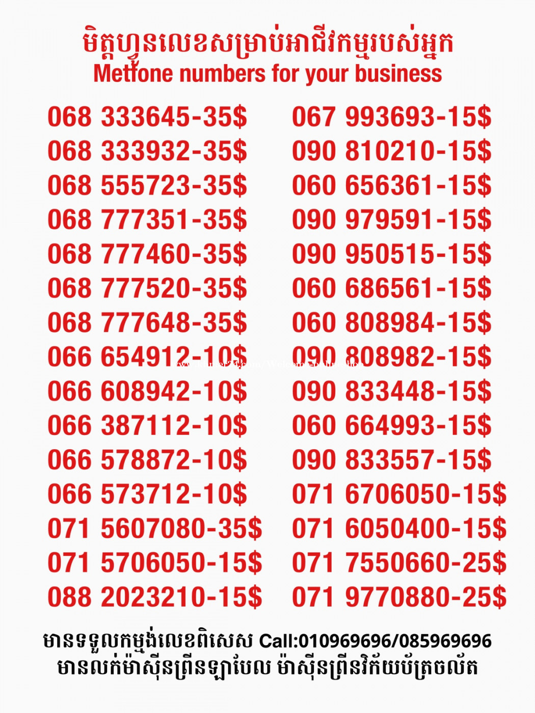 មានលក់លេខពិសេស មានទទួលកម្មង់លេខពិសេស មានលក់ម៉ាស៊ីនព្រីនឡាបែល មានលក់ម៉ាស៊ីនព្រីនវិក័យប័ត្រ មានលក់សម្ភារៈប្រើប្រាស់ក្នុងគ្រួសារ Smart Prime II 1=30$ Smart hero 1=40$ ទូរសព្ទថ្មីក្នុងប្រអប់ លក់ធូរៗរហូតអស់ពីស្តុក អាចប្រើជាឧបករណ៍សម្រាប់ស៊ែរ wifi បាន ទំនាក់ទំនង(ខ្មែរ | English | 中文):010969696 | 085969696 Telegram: https://t.me/W9696 Telegram group: https://t.me/konkonnada អាសយដ្ឋាន:ផ្ទះលេខ២៣ ផ្លូវបេតុងលេខ១ ភូមិទួលពង្រ សង្កាត់ចោមចៅ ខណ្ឌពោធិ៍សែនជ័យ រាជធានីភ្នំពេញ ទីតាំង https://goo.gl/maps/8moqW4iTHUfJEvWQ9 ដើម្បីស្វែងរកលេខអាជីវកម្មដែលលោកអ្នកពេញចិត្ត សូមចូលទៅកាន់:https://www.khmer24.com/Welcome-onlineshop
