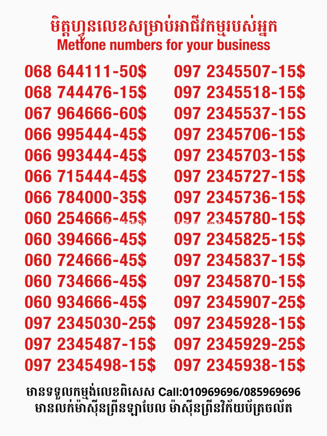 មានលក់លេខពិសេស មានទទួលកម្មង់លេខពិសេស មានលក់ម៉ាស៊ីនព្រីនឡាបែល មានលក់ម៉ាស៊ីនព្រីនវិក័យប័ត្រ មានលក់សម្ភារៈប្រើប្រាស់ក្នុងគ្រួសារ Smart Prime II 1=30$ Smart hero 1=40$ ទូរសព្ទថ្មីក្នុងប្រអប់ លក់ធូរៗរហូតអស់ពីស្តុក អាចប្រើជាឧបករណ៍សម្រាប់ស៊ែរ wifi បាន ទំនាក់ទំនង(ខ្មែរ | English | 中文):010969696 | 085969696 Telegram: https://t.me/W9696 Telegram group: https://t.me/konkonnada អាសយដ្ឋាន:ផ្ទះលេខ២៣ ផ្លូវបេតុងលេខ១ ភូមិទួលពង្រ សង្កាត់ចោមចៅ ខណ្ឌពោធិ៍សែនជ័យ រាជធានីភ្នំពេញ ទីតាំង https://goo.gl/maps/8moqW4iTHUfJEvWQ9 ដើម្បីស្វែងរកលេខអាជីវកម្មដែលលោកអ្នកពេញចិត្ត សូមចូលទៅកាន់:https://www.khmer24.com/Welcome-onlineshop