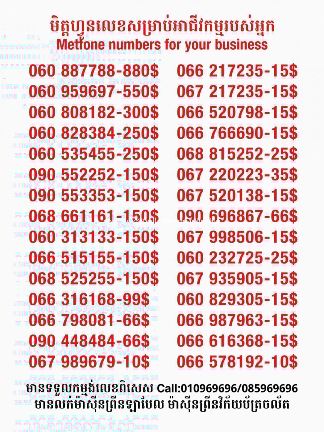 មានលក់លេខពិសេស មានទទួលកម្មង់លេខពិសេស មានលក់ម៉ាស៊ីនព្រីនឡាបែល មានលក់ម៉ាស៊ីនព្រីនវិក័យប័ត្រ មានលក់សម្ភារៈប្រើប្រាស់ក្នុងគ្រួសារ Smart Prime II 1=30$ Smart hero 1=40$ ទូរសព្ទថ្មីក្នុងប្រអប់ លក់ធូរៗរហូតអស់ពីស្តុក អាចប្រើជាឧបករណ៍សម្រាប់ស៊ែរ wifi បាន ទំនាក់ទំនង(ខ្មែរ | English | 中文):010969696 | 085969696 Telegram: https://t.me/W9696 Telegram group: https://t.me/konkonnada អាសយដ្ឋាន:ផ្ទះលេខ២៣ ផ្លូវបេតុងលេខ១ ភូមិទួលពង្រ សង្កាត់ចោមចៅ ខណ្ឌពោធិ៍សែនជ័យ រាជធានីភ្នំពេញ ទីតាំង https://goo.gl/maps/8moqW4iTHUfJEvWQ9 ដើម្បីស្វែងរកលេខអាជីវកម្មដែលលោកអ្នកពេញចិត្ត សូមចូលទៅកាន់:https://www.khmer24.com/Welcome-onlineshop
