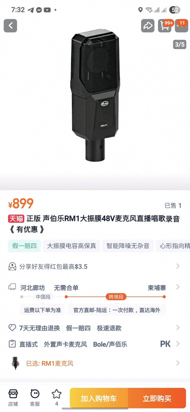 Genuine SoundBole RM1 large diaphragm 48V microphone live singing recording