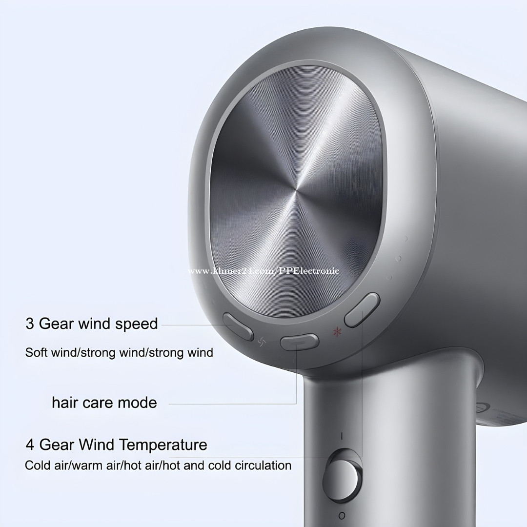 Mijia High-Speed Water Ion Blower H701 ជាម៉ាសុីនផ្លុំសម្ងួតសក់ដែលមាន រូបរាងស្អាត និងទម្ងន់ស្រាលងាយស្រួលក្នុងការប្រើប្រាស់ប្រចាំថ្ងៃ 🛡 ធានារយៈពេល 6 ខែ 🛵ដឹកជញ្ជូនដោយឥតគិតថ្លៃទូទាំងប្រទេស 🔘លក្ខណៈពិសេស ☑️មានក្បាលសម្រាប់ផ្លាស់ប្តូរ ☑️ សំឡេងខ្យល់ស្ងាត់ល្អ ☑️ កម្លាំងអគ្គិសនីដល់ 1600W ជួយឲ្យម៉ាស៊ីនផ្លុំសក់មានថាមពលខ្លាំង និងអាចផ្លុំសក់ស្ងួតបានលឿន ☑️ Ionic Blow Dryers ម៉ាស៊ីនផ្លុំសក់ប្រើបច្ចេកវិទ្យា Ion Technology ដែលធ្វើឲ្យសក់រលោង មិនជំពាក់គ្នា និងធ្វើឲ្យសក់រលោងស្អាត ☑️ ល្បឿនបង្វិលម៉ូទ័ររហូត 110000 ដងក្នុងមួយនាទី (110000 Rpm) ដែលបង្ហាញថា ម៉ាស៊ីនមានល្បឿនខ្លាំង និងផ្លុំខ្យល់ចេញលឿន