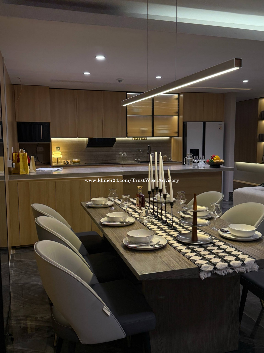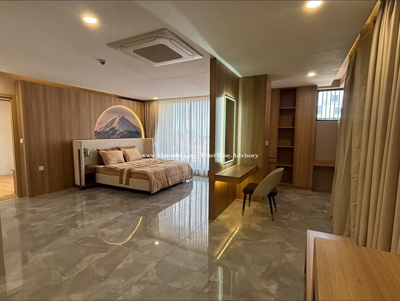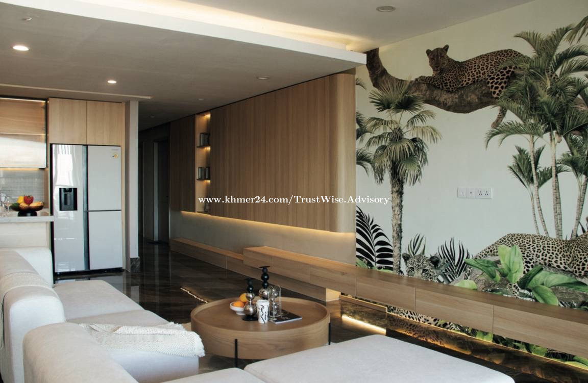 Modern penthouse for rent ๐Toul Kok Size :420sqm Floor: 16F (Whole Floor ) 5 Bedroom 6 Bathroom 1 Entertainment Room 1 Laundry Center 1 Living Room Equip: Smart Home Systems control Price :8800$|month Free WiFi 80gmb Free Car Parking 4 Cleaning 1time/month Exclude Water 0.75$ Electricity 0.25$