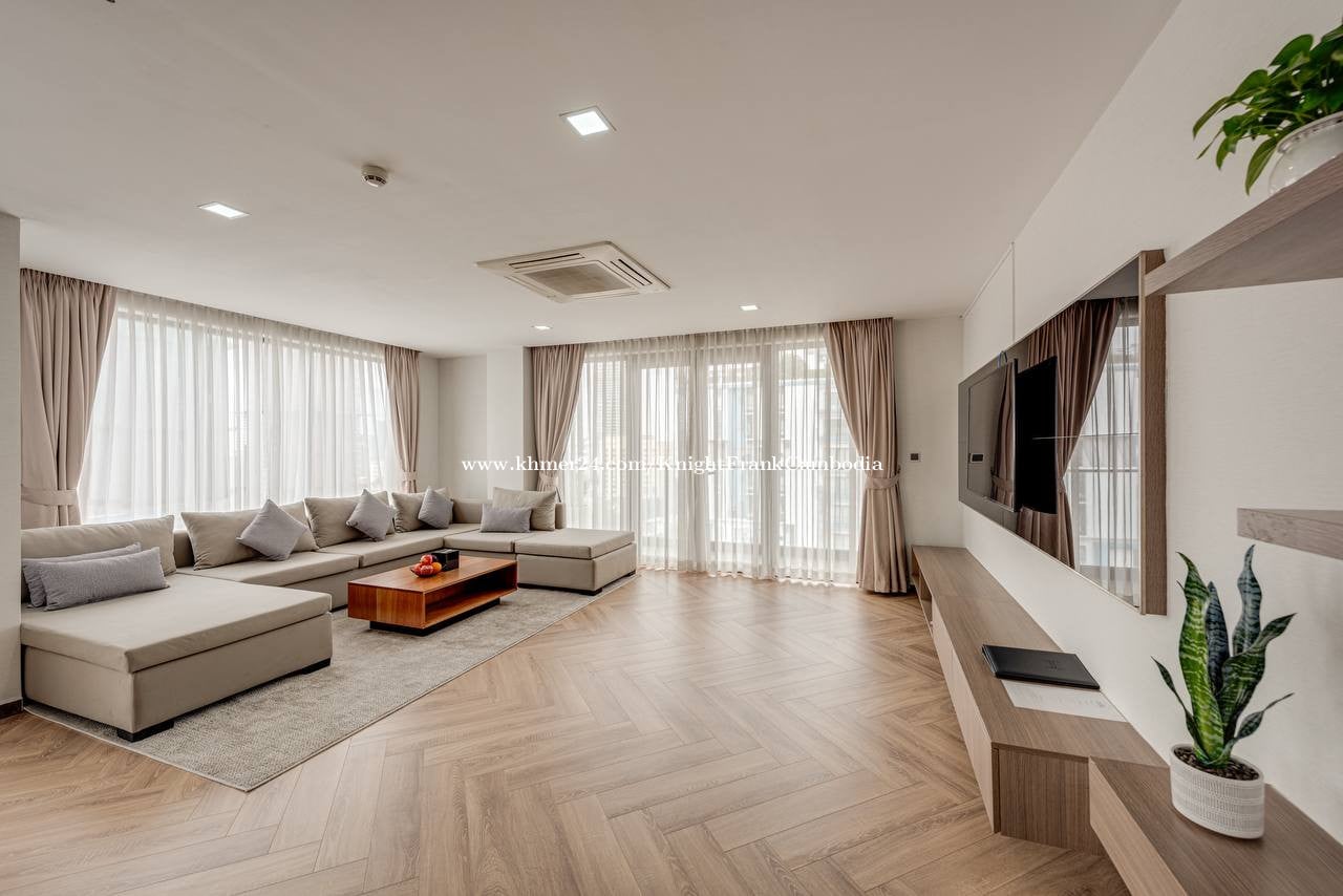 Located in the heart of BKK1, this spacious apartment offers modern comfort, full amenities, and a premium city lifestyle. . Property Details: . Bedrooms: 3 . Bathrooms: 4 . Living Room: 1 . Kitchen: 1 . Storage Room: 1 . Size: 180 sqm . Floor: 11th . Rental Price: $3,500 per month . Fully Furnished . Included Services & Amenities: . Internet and Cable TV . Cleaning service (twice per week) . Management fees . Access to swimming pool, gym, steam room, sauna, rooftop garden . 24/7 Security and PPCTV . Parking space . Water usage Excluded: . Electricity . Don't miss this incredible offer. Contact us today to schedule a viewing. Contact: Lin Lin: Phone/WhatsApp: +855 (0)15 866 069 Telegram: +855 (0)92 866 069 Email: sok***************@kh.knightfrank.comClick To Sent Email Rithy: Phone/WhatsApp: +855 (0)16 319 089 Telegram: +855 (0)93 319 089 Email: rit*******@kh.knightfrank.comClick To Sent Email Explore more listings: Website: www.knightfrank.com.kh Telegram Channel: Apartment in Phnom Penh by Lin Lin