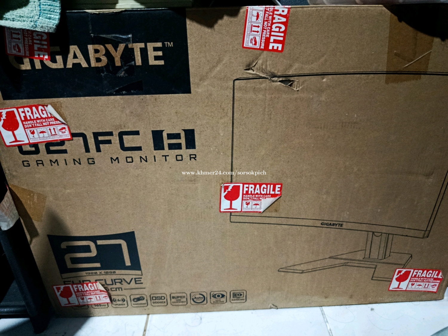 ម៉ូនីទ័រកោងទំហំ27អ៊ីញ ឆ្កូតបន្តិចដូចក្នុងរូប មានប្រអប់។ Monitor Gigabyte G27FC VA Curved 27inch 165hz Small Scratch Like in the picture still have box. 110$