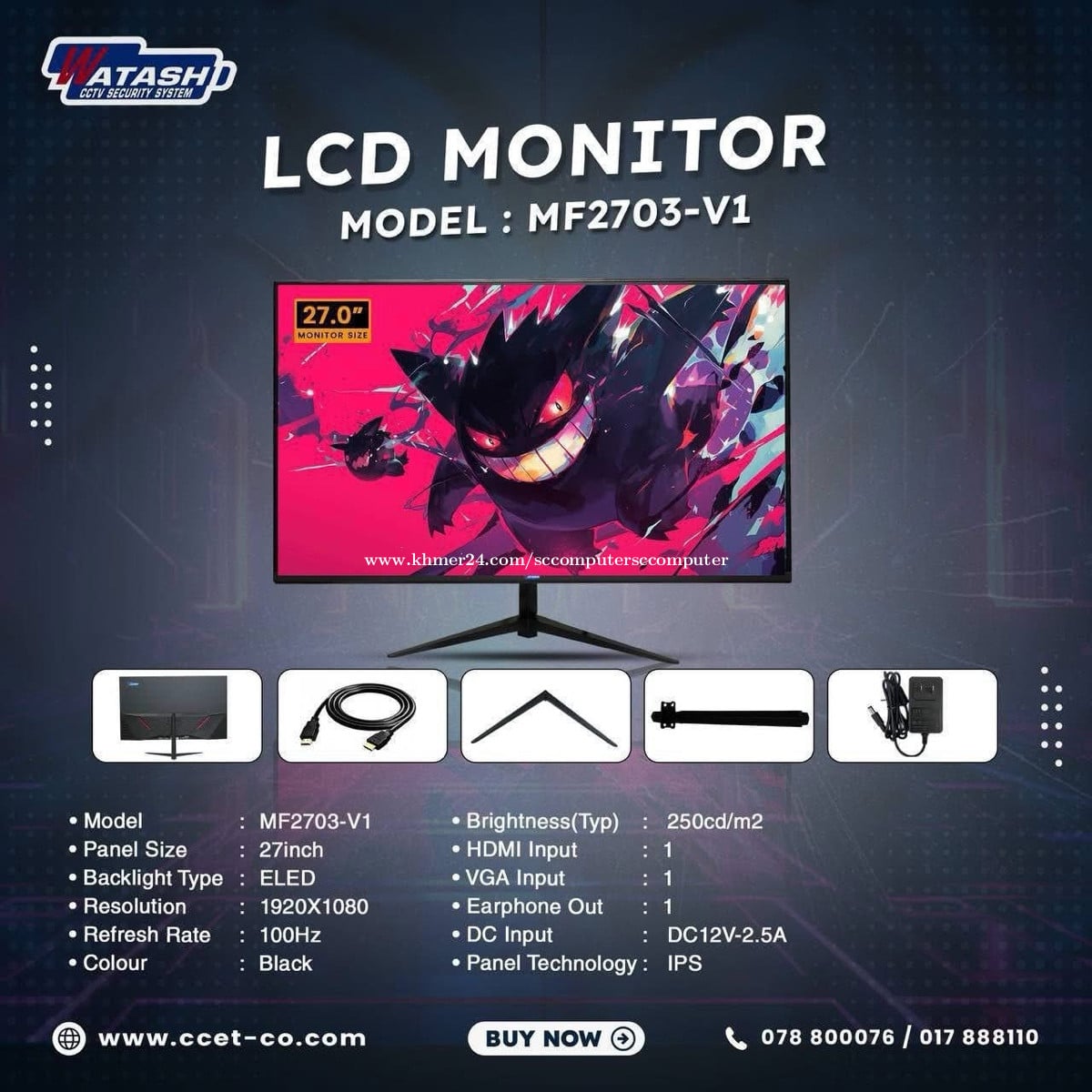 Monitor Watashi Brand and HPC Brand ថ្មីប្រអប់ អីវ៉ាន់មាននៅក្នុងស្តុកស្រាប់បងៗអាចធ្វើការកម្ម៉ង់បាន មានធានារយះពេល1ឆ្នាំពេញ 📩 Price :xx$ 💵 Monitor Watashi brand -MF2403-V-N / 72$ -MF2703-V1 /95$ -MZ270A-K /209$ -MZ320G-Y /235$ Monitor HPC Brand -23.8” IPS FHD 100Hz (H248X)= 70$ -24.5" FHD (1980*1080) 75Hz (H259)= 70$ -27” IPS FHD 100Hz (H278X) =89$ មាននៅហាង SC Computer អេសសុីកុំព្យូទ័រ 💁🏻♀️✅ ឆាតមកផ្ទាល់បានចា ❤️ ☎️ 089978xxxClick To Call telegram(ឈី ឈី) ☎️ 016200xxxClick To Call Smart ចុចLink ចូលគ្រុបបោះដុំ បាន 👇🏻 ✅ Link Group បោះដុំ = https://t.me/+G4d1DH1HM51jZGE1 ✅Link TikTok = https://www.tiktok.com/@kimchhy77?_t=8rsylp5kaDH&_r=1 ✅Link Telegram = https://t.me/kimchhy_999 ✅Link Khmer 24 = https://www.khmer24.com/sccomputersccomputer ✅Link FB = https://www.facebook.com/share/1HXXej9fPH/?mibextid=LQQJ4d ✅Maps : https://maps.app.goo.gl/amXqFMtwRzDdWHKQ9 អរគុណបងៗសំរាប់ការគ្រាំទ្រហាងSC Computer អេសសុីកុំព្យូទ័រ យើងខ្ញុំរហូតមក🙏🏻❤️