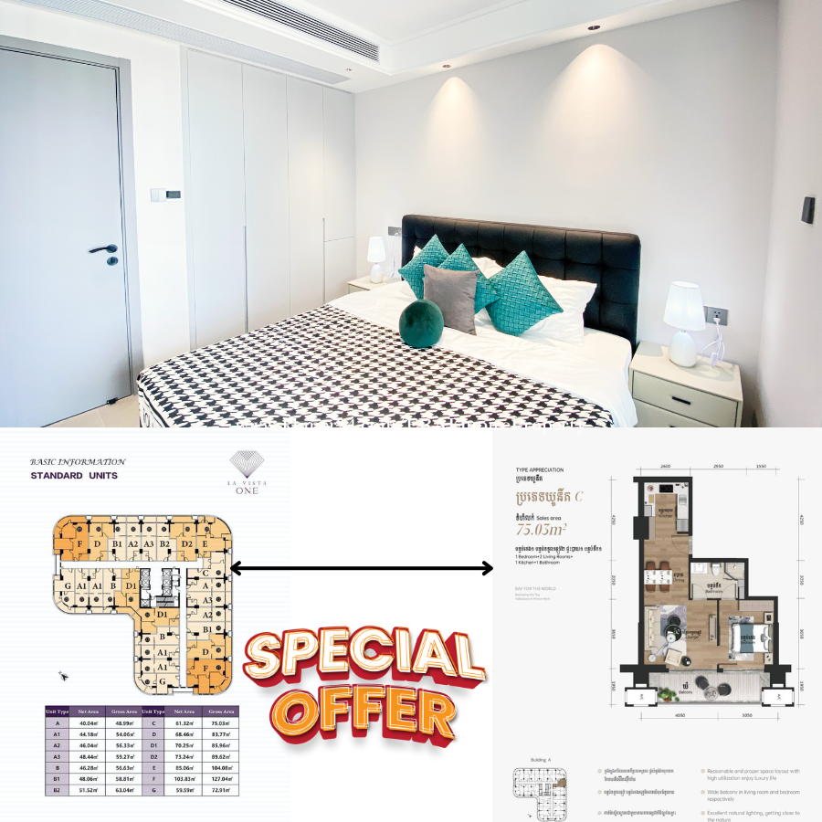 1-Bedroom Luxury Condo for Sale โ La Vista One ๐ 28th Floor | Riverfront Living | Prime Location ๐ Location: Mekong River Street, Chroy Changvar, Phnom Penh, Cambodia ๐ 1 Bedroom | ๐ฟ 1 Bathroom | ๐ 1 Living Room | ๐ฝ 1 Kitchen | ๐ 1 Balcony ๐ Size: 75.03 mยฒ ๐ข Floor: 28th ๐ฐ Original Price: $248,320 ๐ฅ Special Discounted Price: $173,888 Only ๐ต Price per mยฒ: $2,317 ๐ Payment Option: โข โ Booking: $2,000 โข โ Sign SPA: 30% โข โ Balance: 70% Installment over 18 months Why Choose This Unit? โ Panoramic river & city view โ Spacious layout & modern design โ High floor for better breeze and privacy โ Foreigners eligible for ownership โ Freehold title ๐ Contact Us Today for a Viewing! ๐ฑ (+855) 12-242-266 | (+855) 15-262-356 Telegram : https://t.me/saleandmarketing356 ๐ง roe**********@gmail.comClick To Sent Email