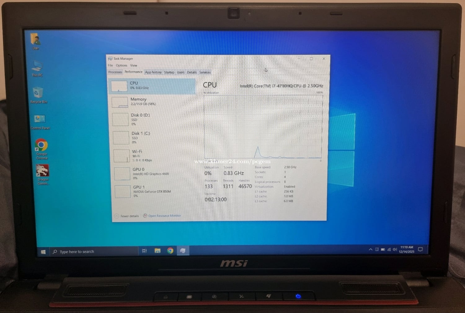 MSI GE60 2PL Apache Gaming Laptop You can contact me with Telegram: O1734364O Price: $ 160 -CPU: Intel®️ Core™️ i7-4710HQ Processor 6M Cache, up to 3.50 GHz Boost Clock -GPU: GTX 850M 2GB -RAM: 12GB DDR3 -Storage: 128GB SSD + 128GB SSD -Display: 15.6-inch 1080P -Battery: 1.5 Hours -Windows 10 Pro Activated -----------------------------------------------------