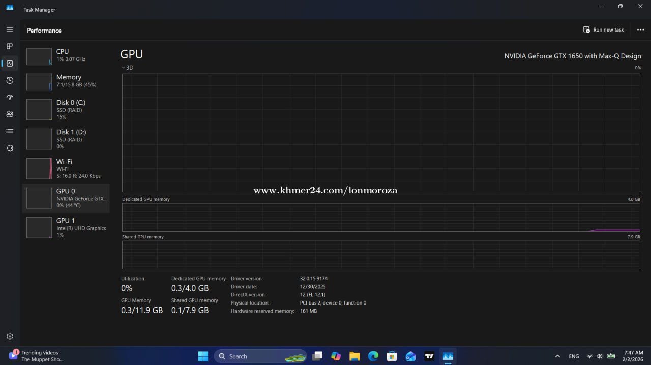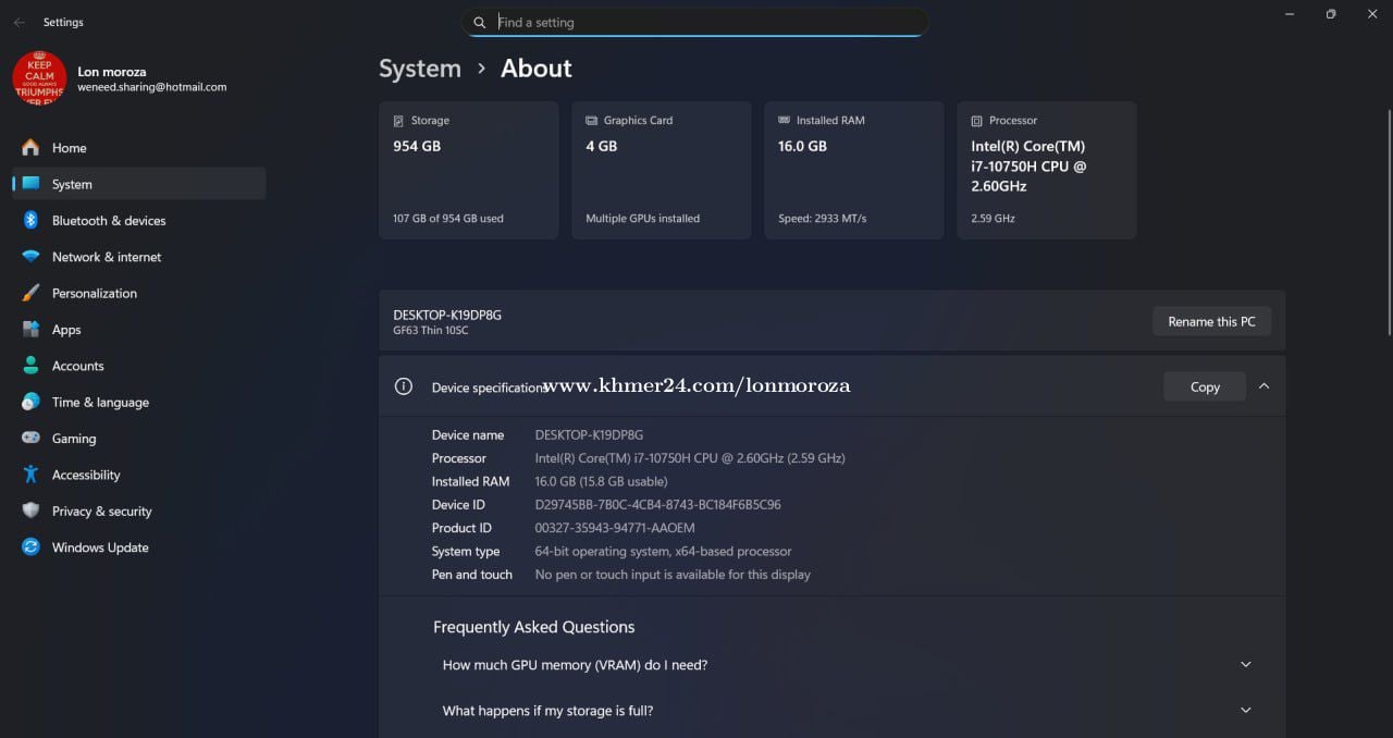 Model: MSI GF63thin CPU: Core i5-10th 2.50Ghz Ram : 16Gb SSD: 1T VGAII : intel UHD graphics VGA : NVIDID GeForce GTX 1650 4GB Screen: 15.6inch Keyboard Red នៅស្អាតដូចថ្មី គ្រាន់តែថ្មអត់កាន់តែlaptopdesign ដោតឌុយប្រើជារឿងធម្មតា