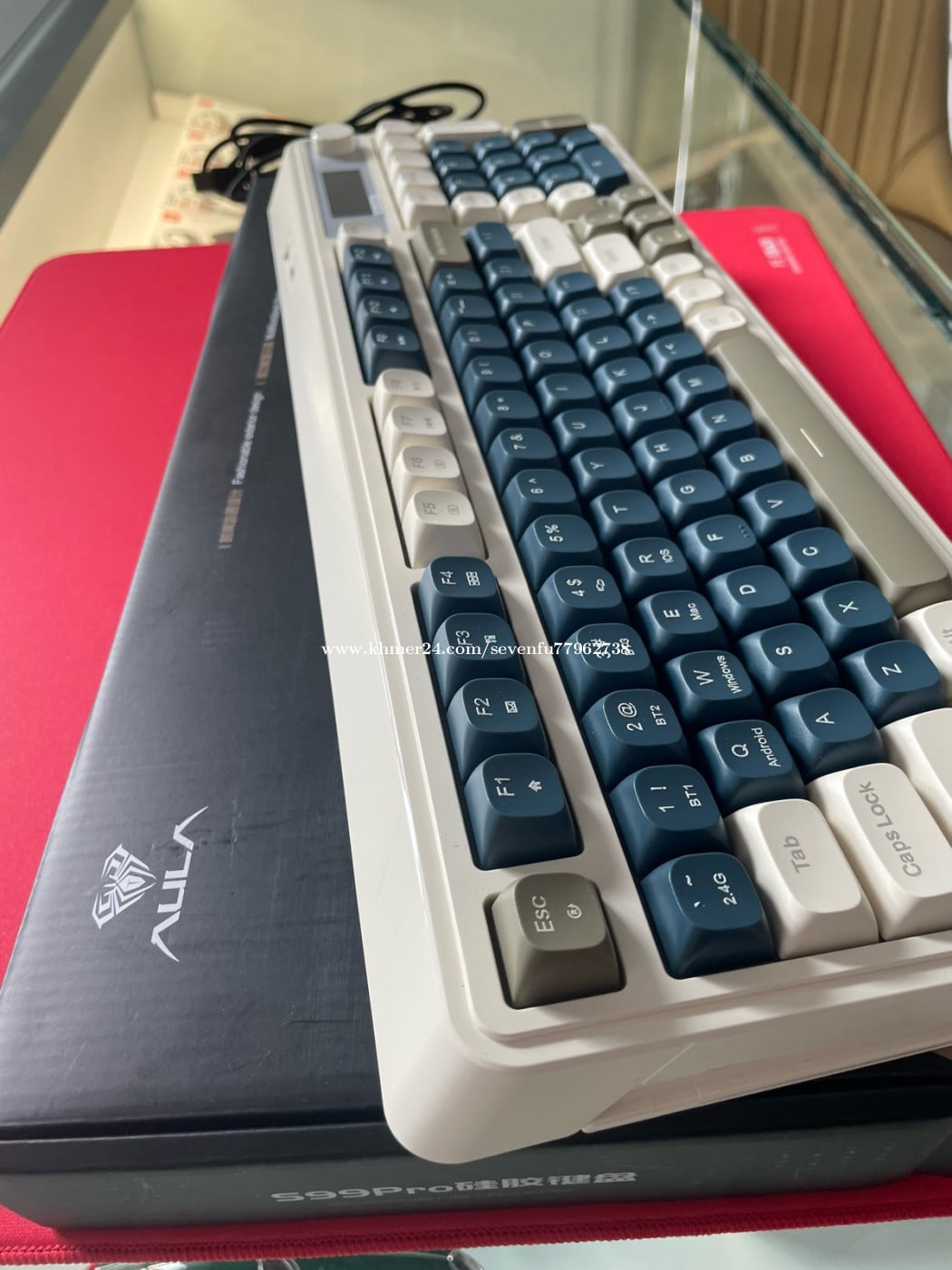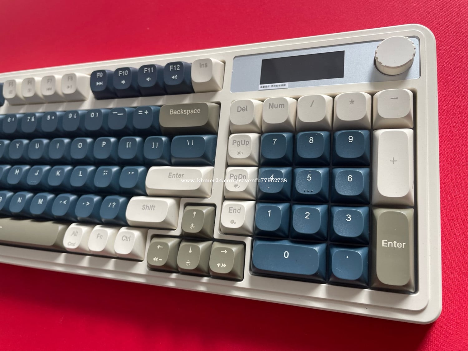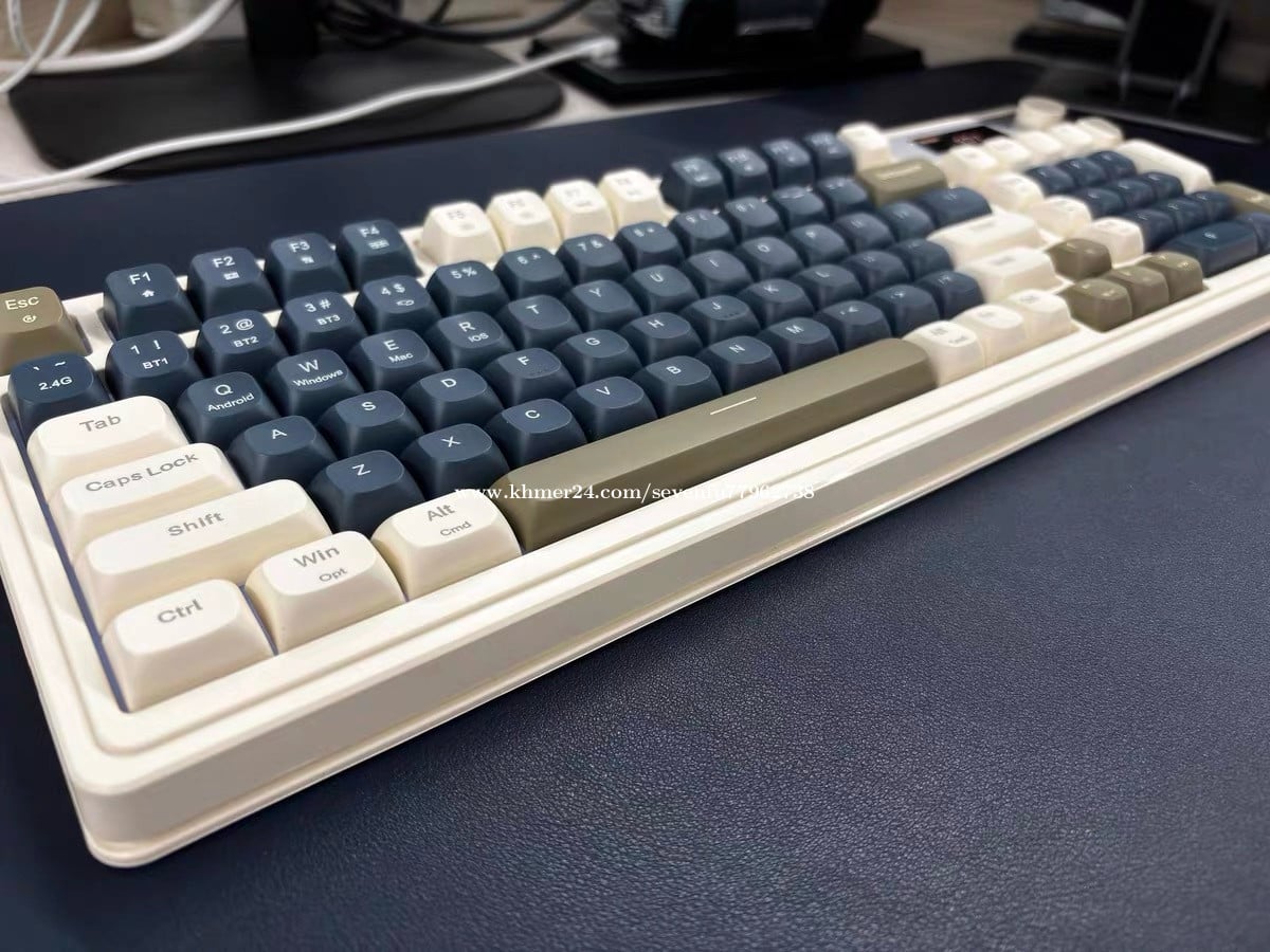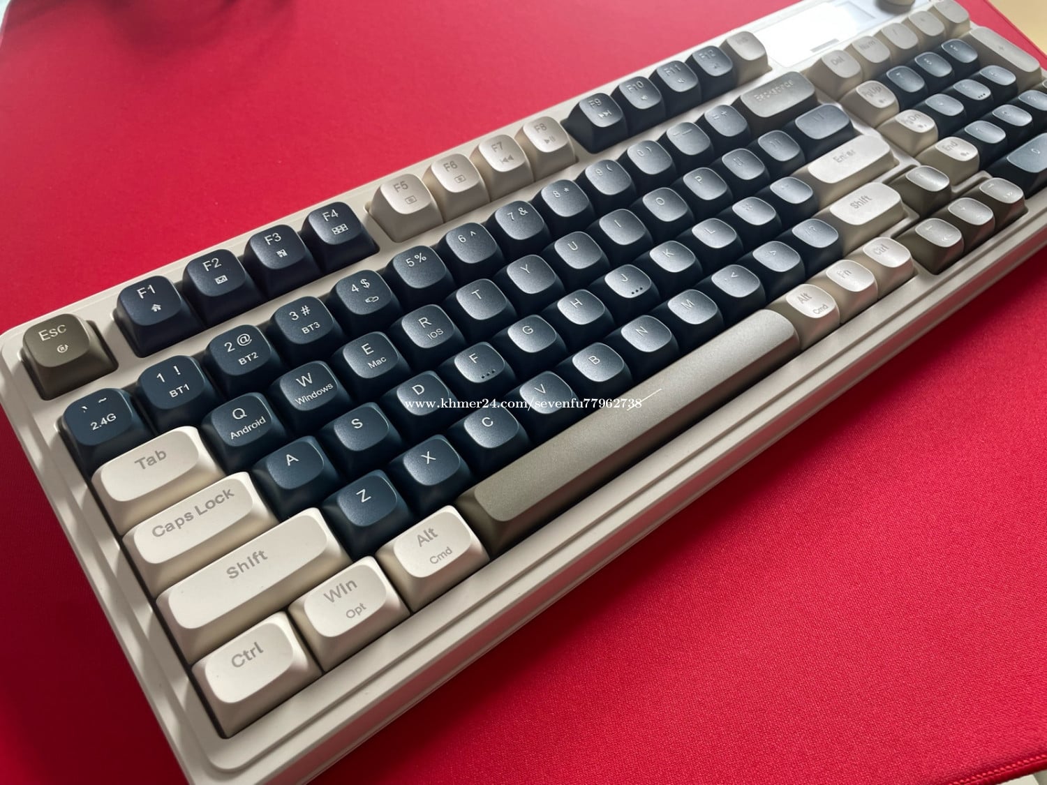 1. Full-size / Compact Layout with Numeric Keypad • Includes the main typing area + function keys (F1–F12) + a dedicated numeric keypad • Suitable for office work, programming, accounting/data entry, and gaming 2. Mechanical Keyboard Design • Uses mechanical switches (the exact switch type depends on the model) • Provides clear tactile feedback and fast key response • Suitable for long typing sessions • Offers high durability (typically rated for tens of millions of keystrokes) ⸻ 🔁 Multi-System & Multi-Mode Support 3. Multi-System Switching Keycaps are clearly labeled for: • Windows • macOS • Android • iOS 👉 This indicates broad system compatibility, allowing users to switch keyboard layouts via shortcut keys. 4. Multi-Device / Multi-Connection Modes Based on the keycap labels: • BT1 / BT2 / BT3 (multiple Bluetooth device switching) • 2.4G wireless mode • (Usually also supports USB wired mode) 👉 The keyboard can connect to computers, tablets, and smartphones and switch between devices with a single key press—ideal for multi-device users. ⸻ 🎛️ Extended Features 5. Multifunction Rotary Knob (Top Right) • Common uses include: • Volume adjustment • Mute control • Scrolling or parameter adjustment • Improves efficiency, especially for office and creative workflows 6. Status Display Area • A display area on the right side (may be a status screen or decorative panel) • Used to show: • Connection mode • Battery level • System status (depending on the specific model) ⸻ 💡 Additional Features 7. Function Key Combinations (Fn) • Supports multimedia controls (play/pause, volume, brightness, etc.) • Helps keep the desk setup clean by reducing the need for extra devices 8. Two-Tone Keycap Design • Clear color separation • Combines aesthetics with easier key recognition • Often made of PBT keycaps, which are more wear-resistant and less prone to shine (depending on specifications) ⸻ 🎯 Suitable Users • Office and home users • Users with multiple devices and operating systems • Those who enjoy mechanical keyboard feel and stylish peripherals • Users who need a numeric keypad but prefer a relatively compact layout If you’d like, I can also help you: • Decide whether it’s better for office work or gaming • Estimate the possible switch type • Explain common Fn key shortcuts • Compare it with standard membrane keyboards